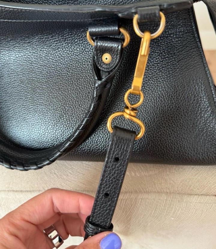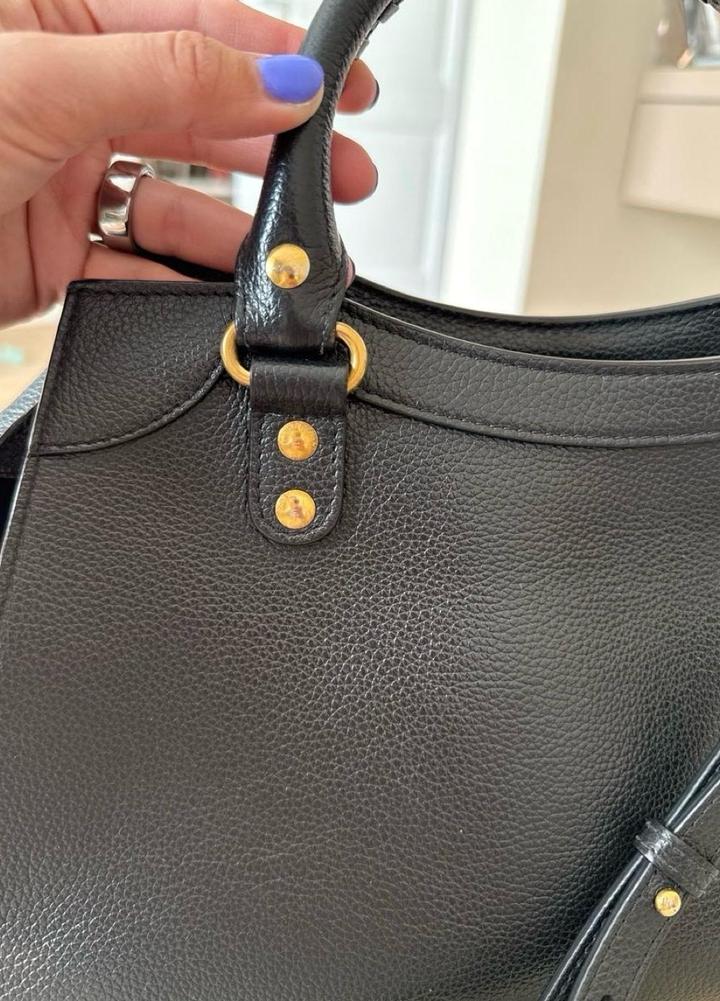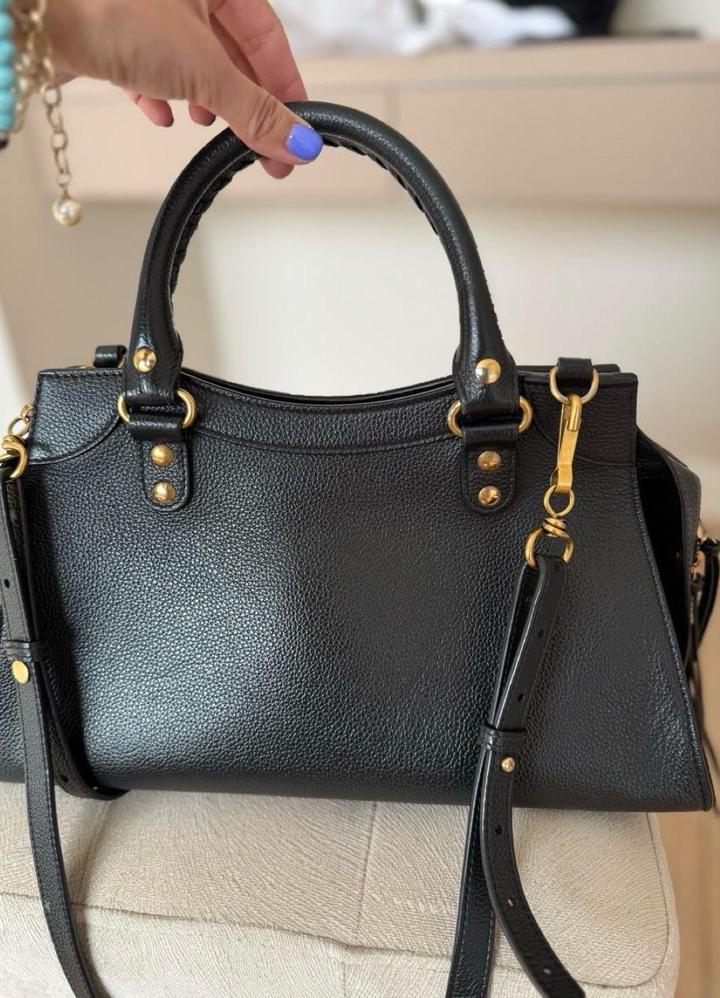 Черная супер прочная кожа Вечная модель City Размер средний Очень вместительная Есть плечевой ремень Фурнитура золото Состояние прекрасное Артикул: 467709