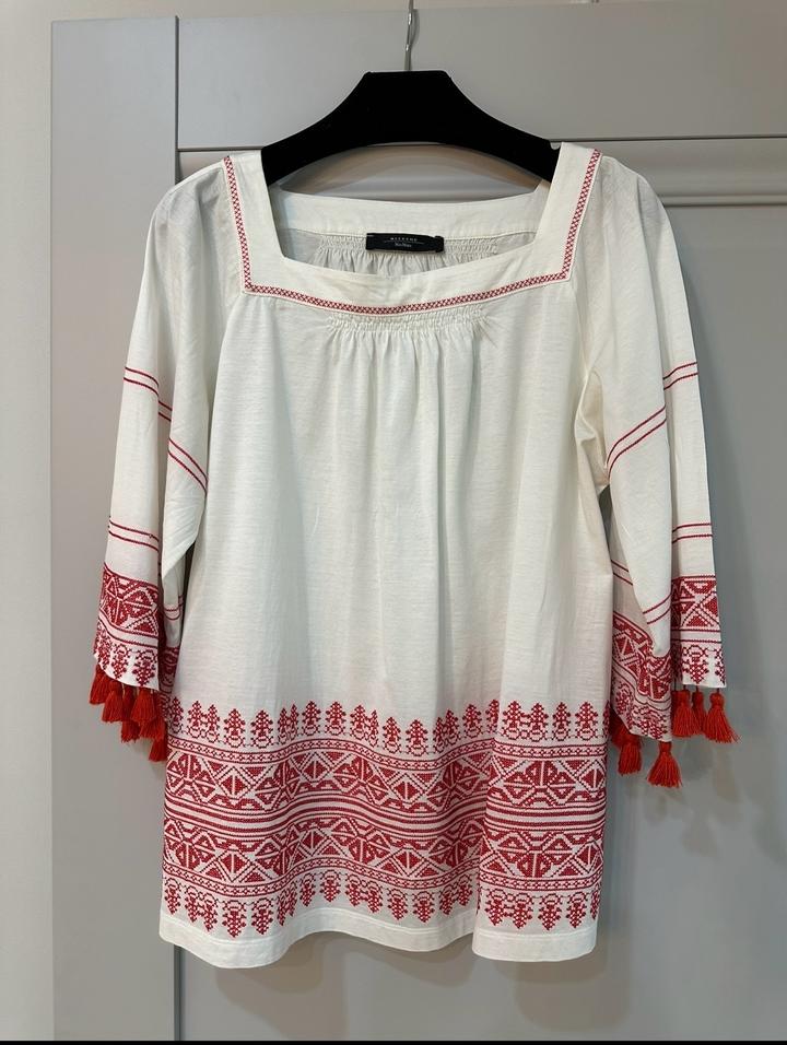 Кофта Max Mara размер S, с вышивкой и кисточками. Свободная и легкая, скрывает все недостатки фигуры и прикрывает животик. Подойдет и беременным. Носила редко. Артикул: 467774