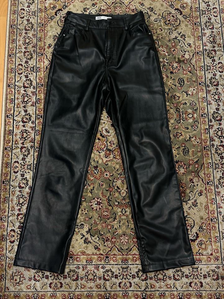 Черные кожаные брюки Zara. Прямого кроя, длинные, не Mom. В отличном состоянии. Чуть маломерки, на 36 будет хорошо Артикул: 467881