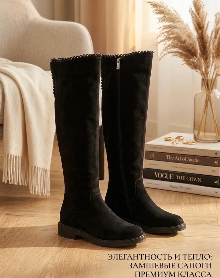 Замшевые сапоги бренда BROCCOLI: надевались 1–2 раза, размер 36, состояние очень хорошее, аккуратно носились.Покупала за 50 000тг. Артикул: 468210