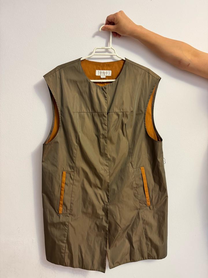 Удлиненный жилет безрукавка из плащевки с потайными застежками , из Европы . Размер примерно 50-52 . Красивого шоколадного цвета , внутри цвет терракота. В отличном состоянии. На весну и просто прохладную погоду. Артикул: 468305