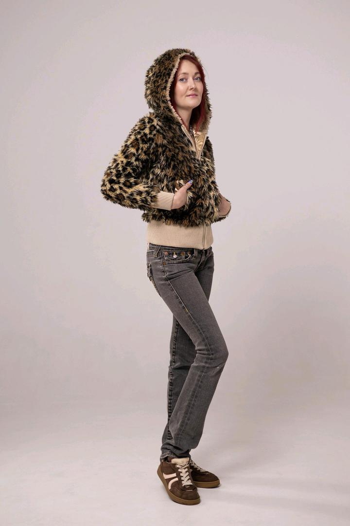 U2k леопардовая шуба из 00-х с капюшоном s/mS/M