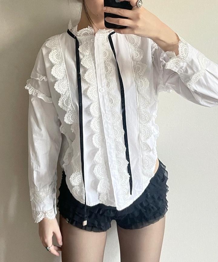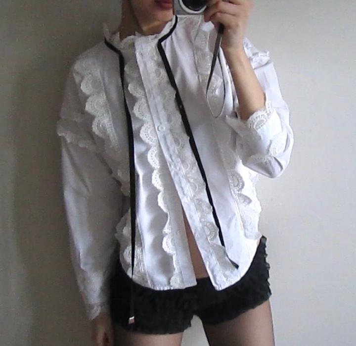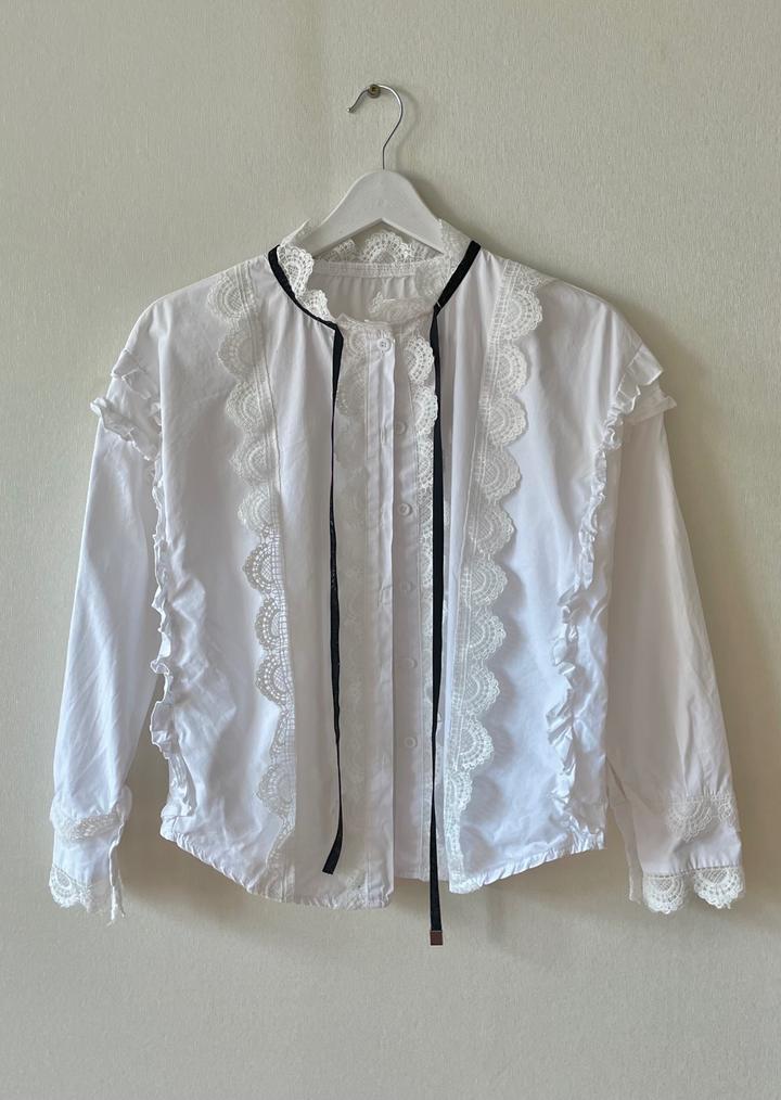Винтажная рубашка с рюшами, кружевом и завязками💔 Размер: S-M Артикул: 468551