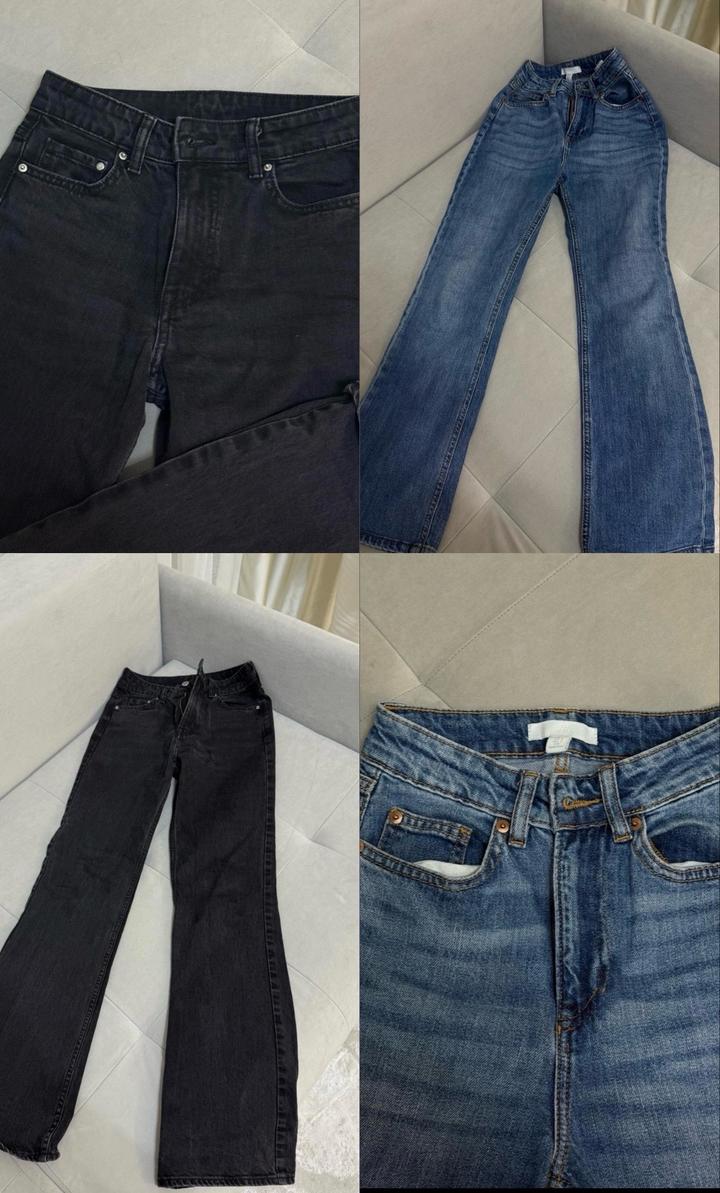 Джинсы в отличном состоянии, Размер 34, ХS. H&M. Кожаные брюки ZARA,размер ХS, новые, без бирок. Все 3 за 12000тг Артикул: 468778