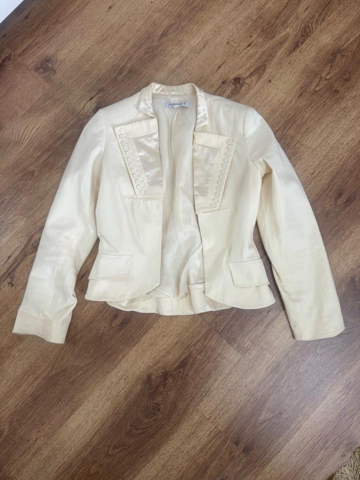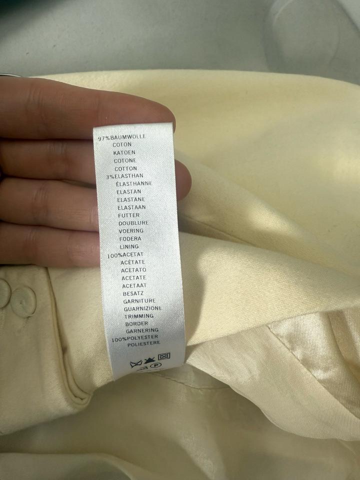 Размер xs. Основной материал хлопок, лацканы ацетат. Цвет сливочно- желтый, цвет butter. Товар оригинальный, но крой был изменен. Артикул: 468810