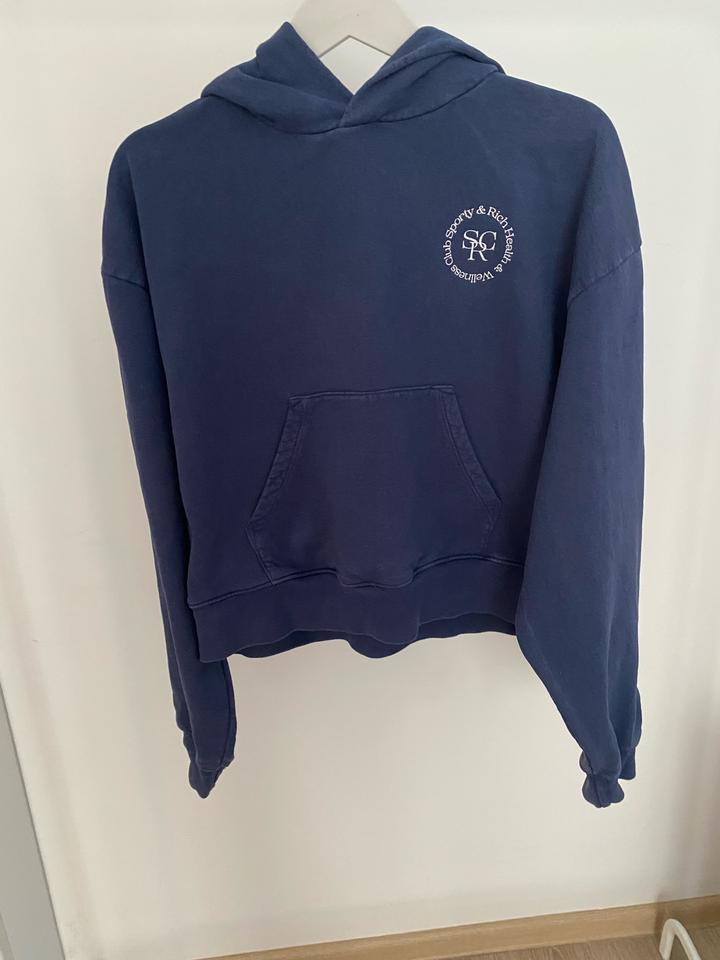 Sporty & Rich Cropped Hoodie Navy (M) Оригинал, made in USA. Культовый логотип Health & Wellness Club. Глубокий navy, укороченный oversize-крой. Очень плотный хлопок, держит форму. Артикул: 469039