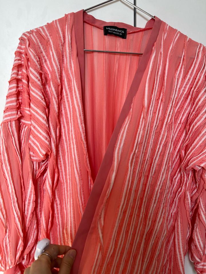 Накидка или абая розового цвета очень необычное,очень легкое. Можно стилизовать платьями и на повседневку с разными джинсами. Было куплено в Турций одевалось только один раз. Вживую смотрится очень красиво могу отправить видео поподробнее. Артикул: 469144