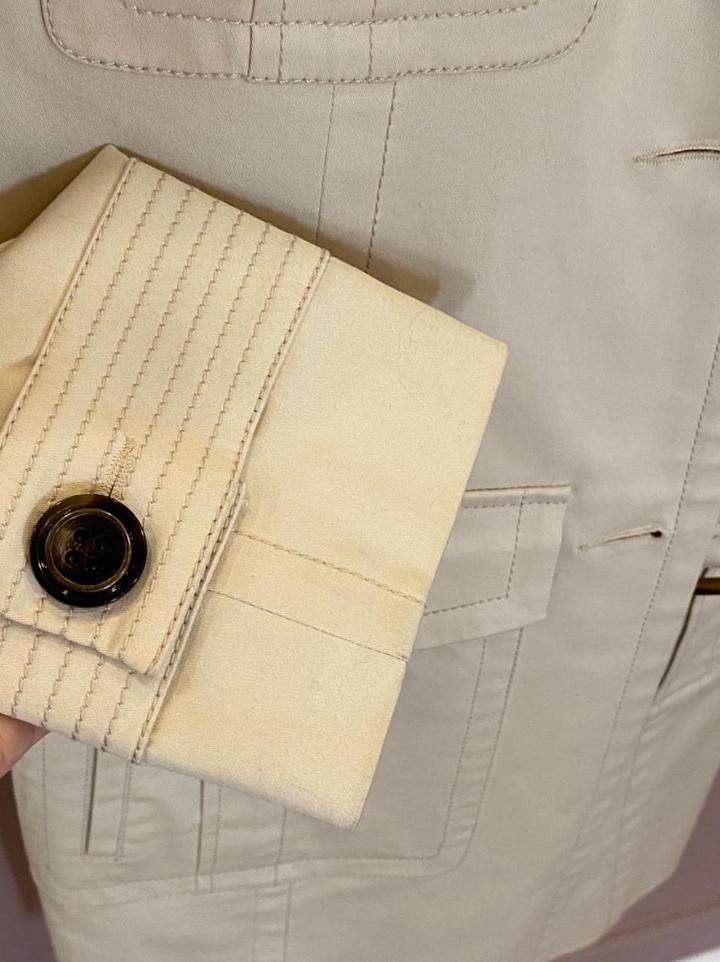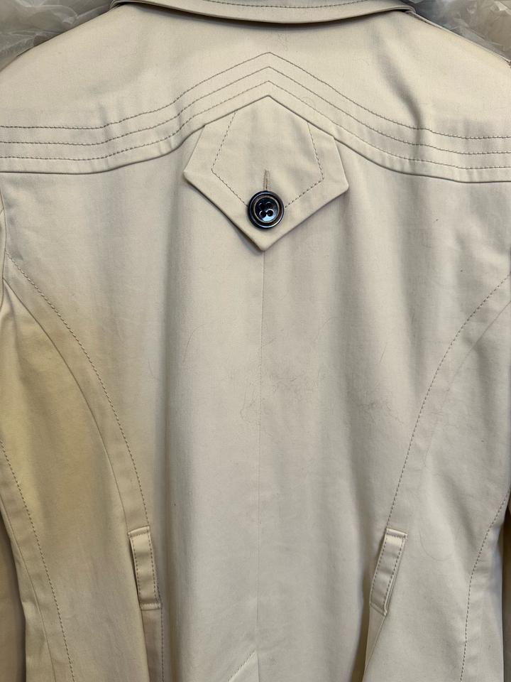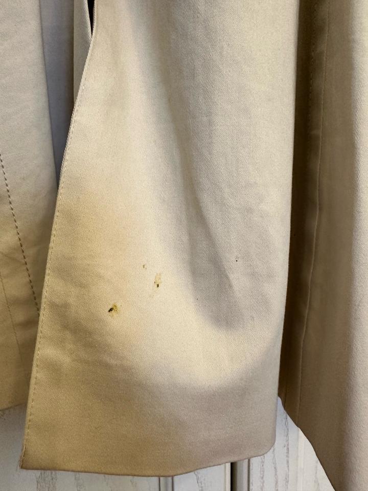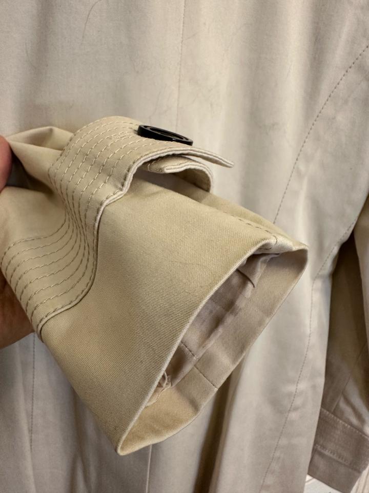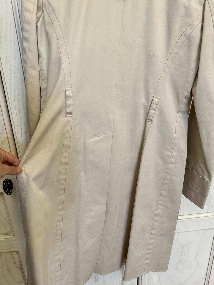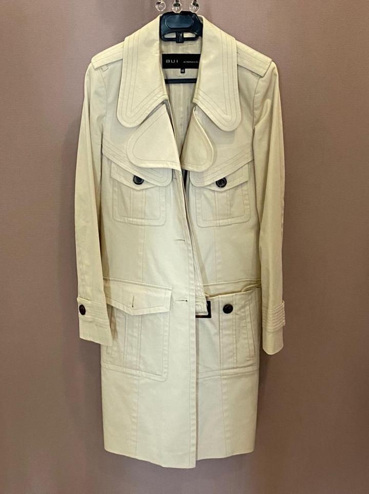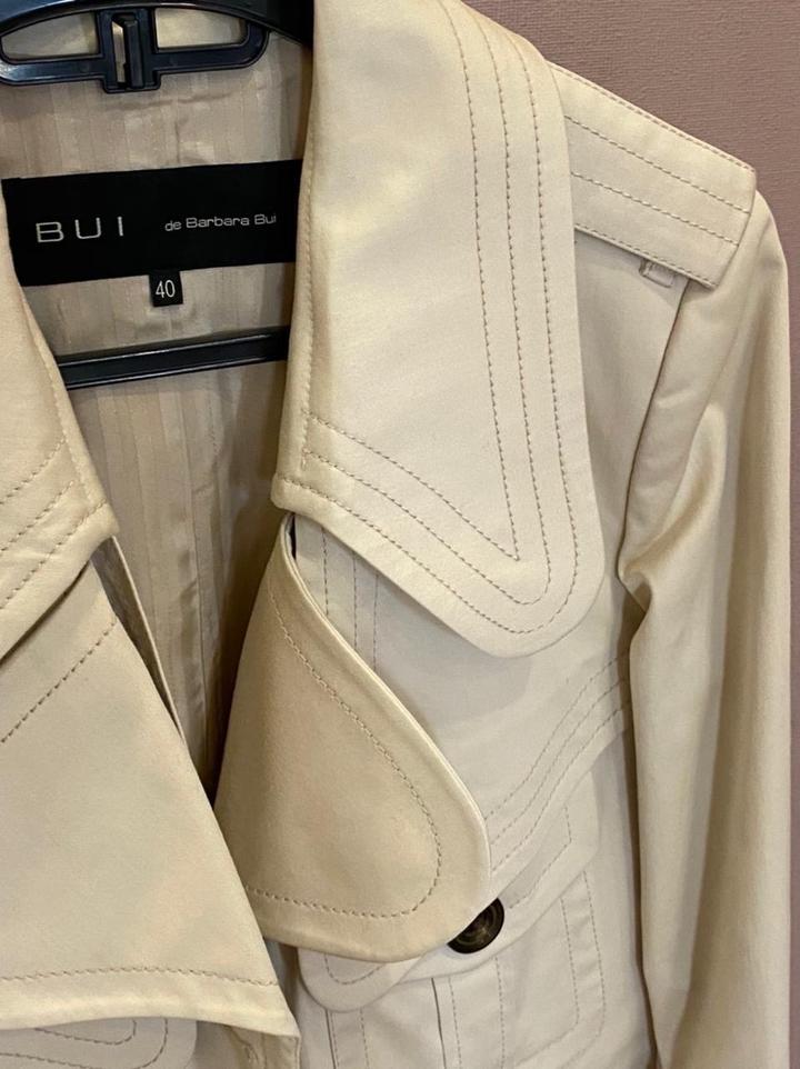 Тренч Barbara bui. Размер 42-44. Есть маленькие точки загрязнения сзади внизу под шлицей. Состояние б/у, цвет слоновой кости, производство Румыния . Состав 97% хлопок , эластан; подклад вискоза с ацетатом. Пояс имеется Артикул: 469217