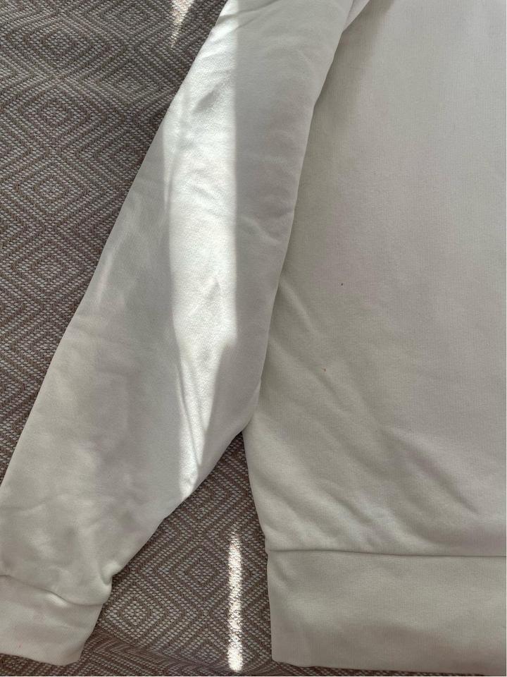 Унисекс; Оверсайз Худи в молочном оттенке, с карманами, мягкая, комфортная. Размер S, фит приближен к M-L. Есть нюанс-маленькие пятнышки на спинке, в области кармана. Артикул: 469353