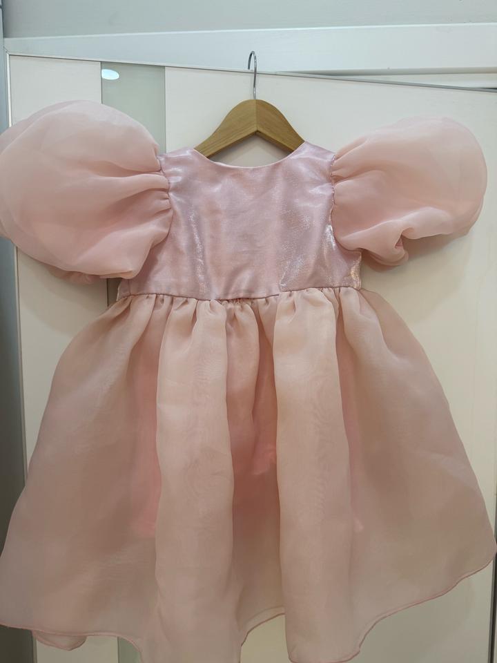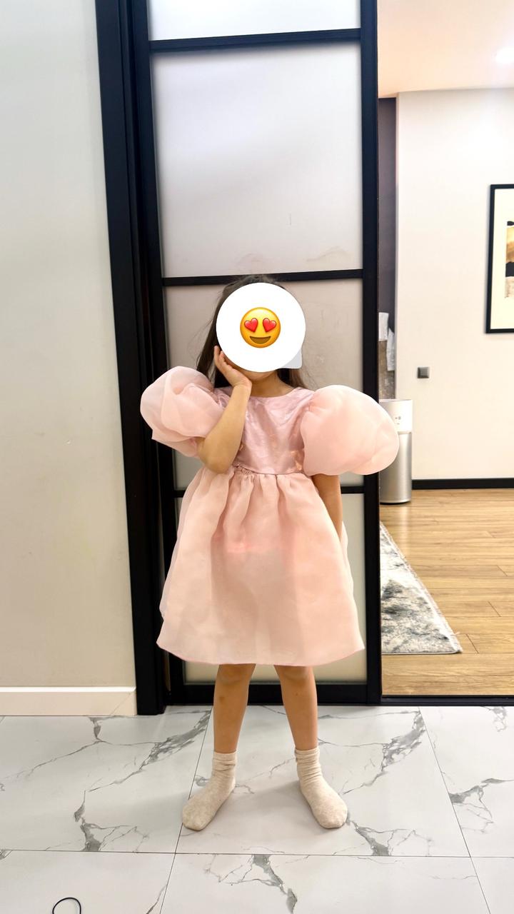 Детское платье нежно-розового цвета. Пышные рукава, воздушная юбка. Есть небольшой дефект (учтено в цене). Размер 5 лет 110 Артикул: 469424