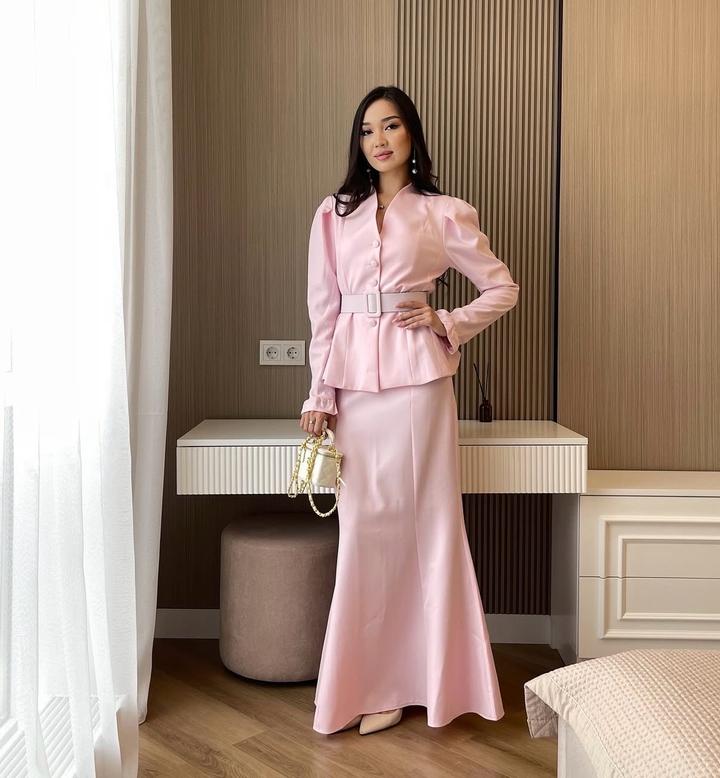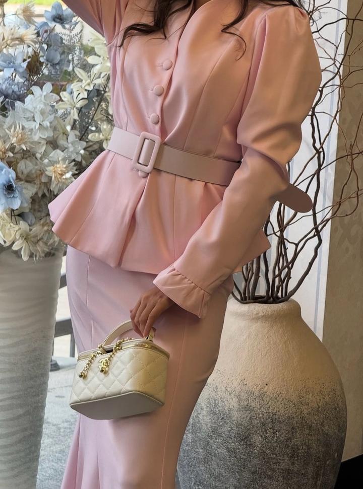 элегантный розовый костюм с акцентом на талию и утончённым силуэтом💕S/M