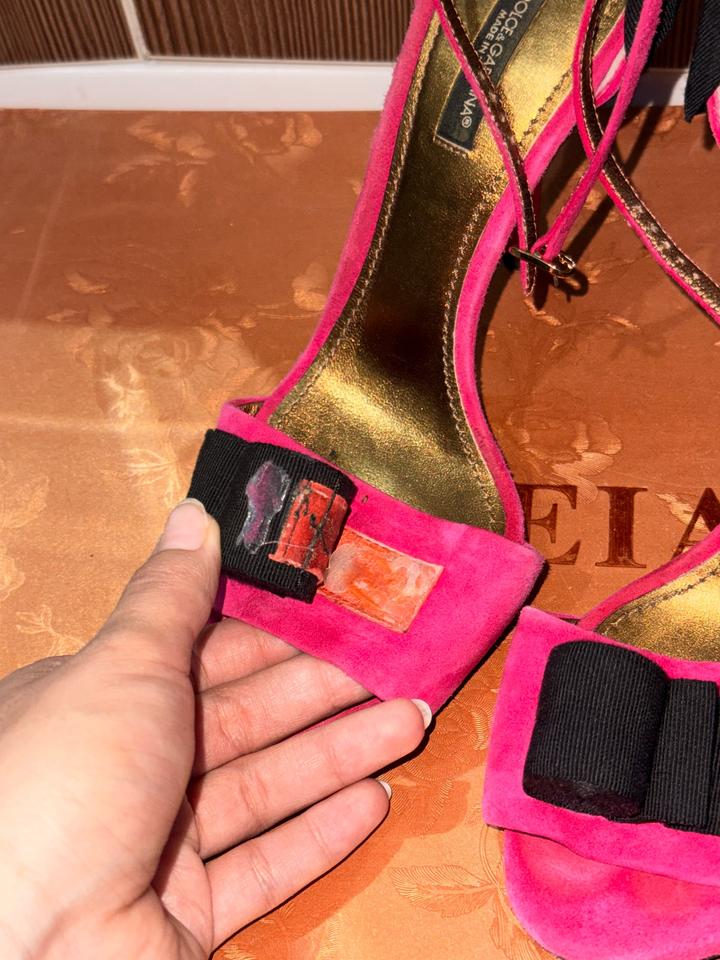 Розовые туфли от дольче габана в хорошем состоянии шпильки тоненькие для тех кто уверенно ходит на каблуках 😘 можно и 39 Есть дефекты следы носки и цветок спереди болтается клей отошел если скелете будет класс Артикул: 469660
