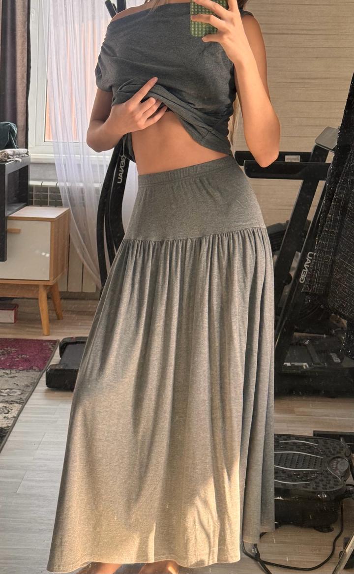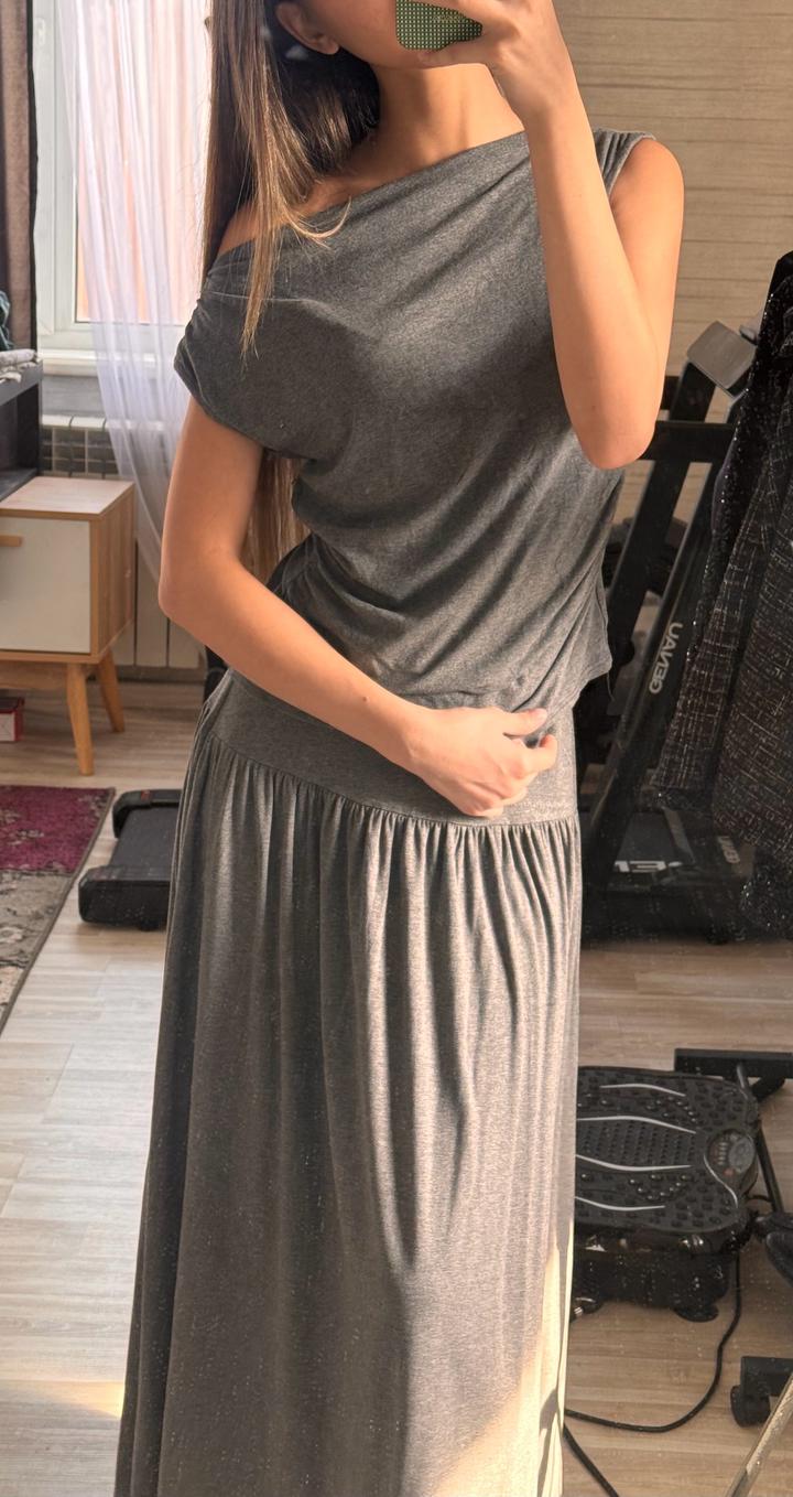 Серого цвета двойка,длинная юбка+топ,отличного качетсва Подойдет на S/M/L Артикул: 469662