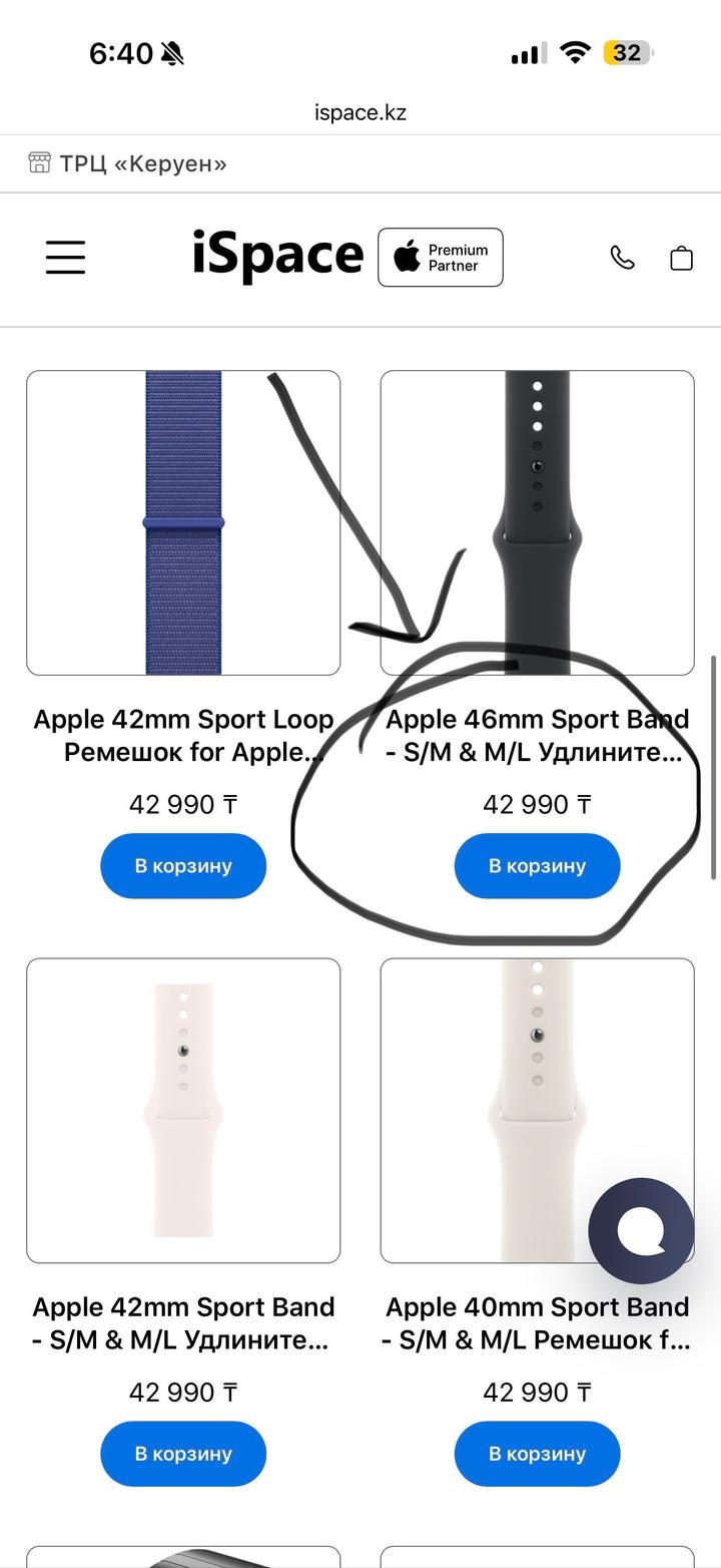 Промокод на первую покупку -2000 тг. 1NCTUR Новый ремешок для часов Apple Watch. Шел в комплекте. Оригинал. Но мне размер не подходит. Я взяла меньше отдельно. Эти не распакованы. Можно и на подарок. В магазине оригинал намного дороже. Фото приложила. 46mm размер М-Л Артикул: 469716