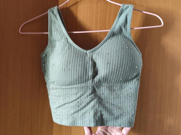 Можно носить как спортивный бюсгалтер, самостоятельный верх или дополнение к образу. Со съемным чашками. Артикул: 469733