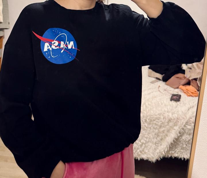 Недорого стильный оверсайз свитшот с модным логотипом NASA в хорошем состоянии производства Турции. Размер стандарт. Без дырок, запаха и пятен. Качество классное, дышащая ткань. Не синтетика, хлопок. Артикул: 469801