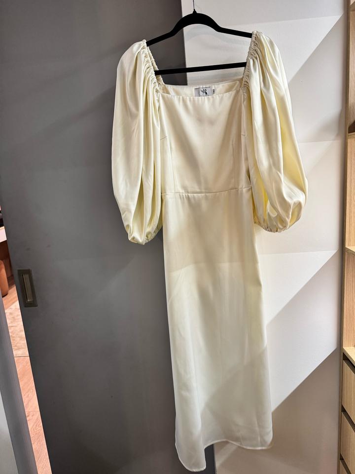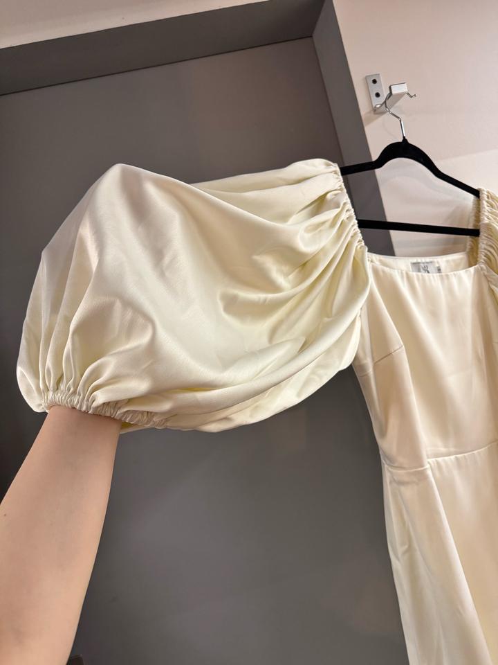 Вечернее платье цвета айвори с пышными рукавами-зефирками казахстанского бренда ателье. Было надето один раз на мероприятие, платье без изъянов и дефектов. Размер S. Плотное, абсолютно не просвечивает. Артикул: 469855