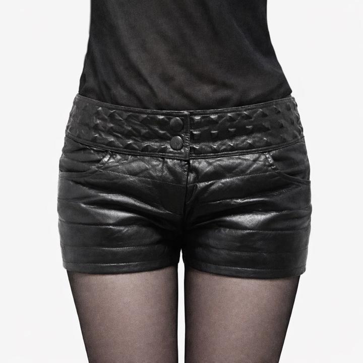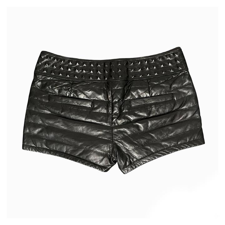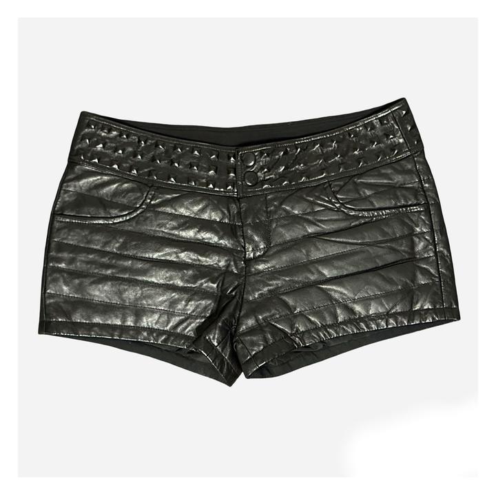 Винтажные шорты на низкой посадке из 100% натуральной овечьей кожи (S-M) В стиле 00-х, с черными заклепками Кожа мягкая и качественная Подойдут на обхват бедер 94-96 см Артикул: 470144