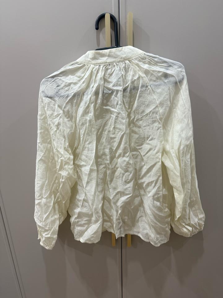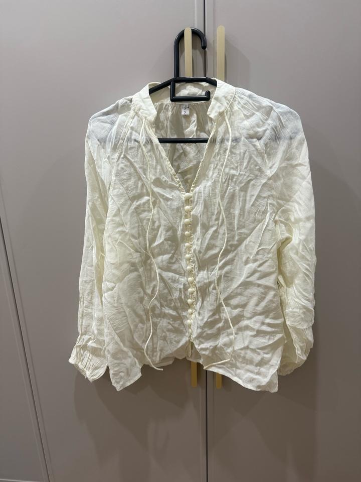 Полупрозрачная блуза бледно желтого цвета, пуговицы все рабочие, можно открыть. Чуть оверсайз фасона Артикул: 470418