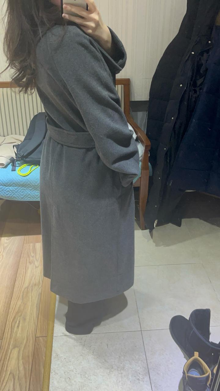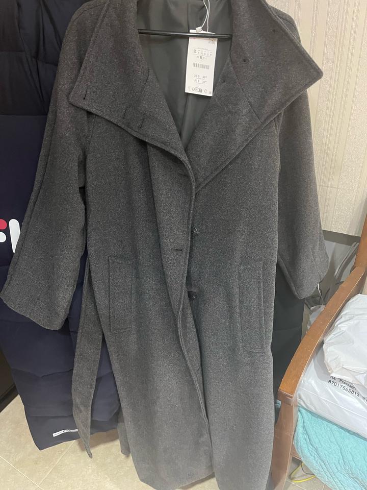 серое пальто Zara с форотникомS
