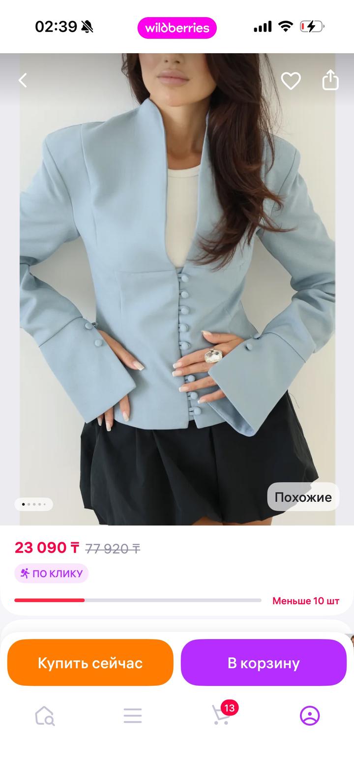 Новый пиджак с биркой, брала на вб и не заметила что одна пуговица отсутствует. Можно заменить пуговицы и носить. Покупала за 23к, отдам дешево. Размер подойдет на хс и с Артикул: 470764