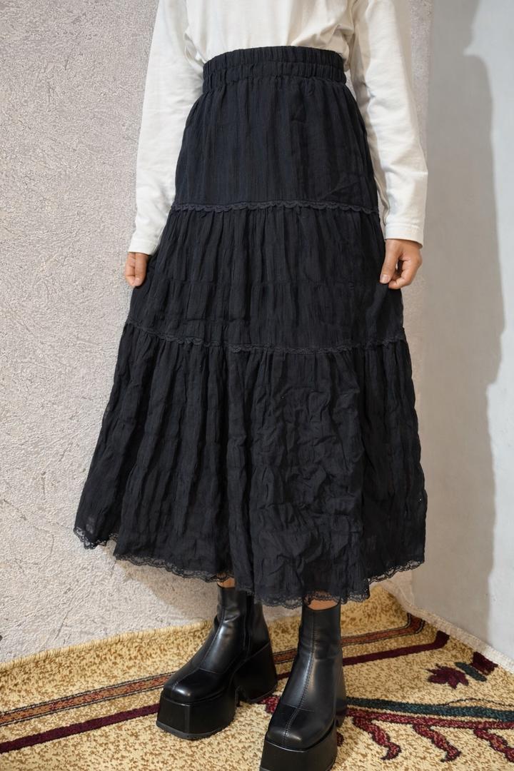 Юбка свободная длинная черная летняя / готический стиль / юбка с оборкамиS/M