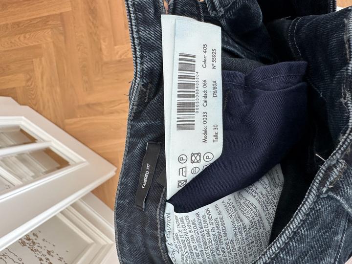 Мужские джинсы Massimo Dutti зауженного кроя Стильные джинсы в универсальном тёмно-синем оттенке — идеальный вариант как для повседневных образов, так и для smart casual стиля. Модель аккуратно садится по фигуре, заужена к низу, визуально вытягивает силуэт. ✔ Размер: 30 ✔ Крой: зауженный (Tapered / Slim) ✔ Классическая посадка ✔ Плотный качественный деним Артикул: 471217