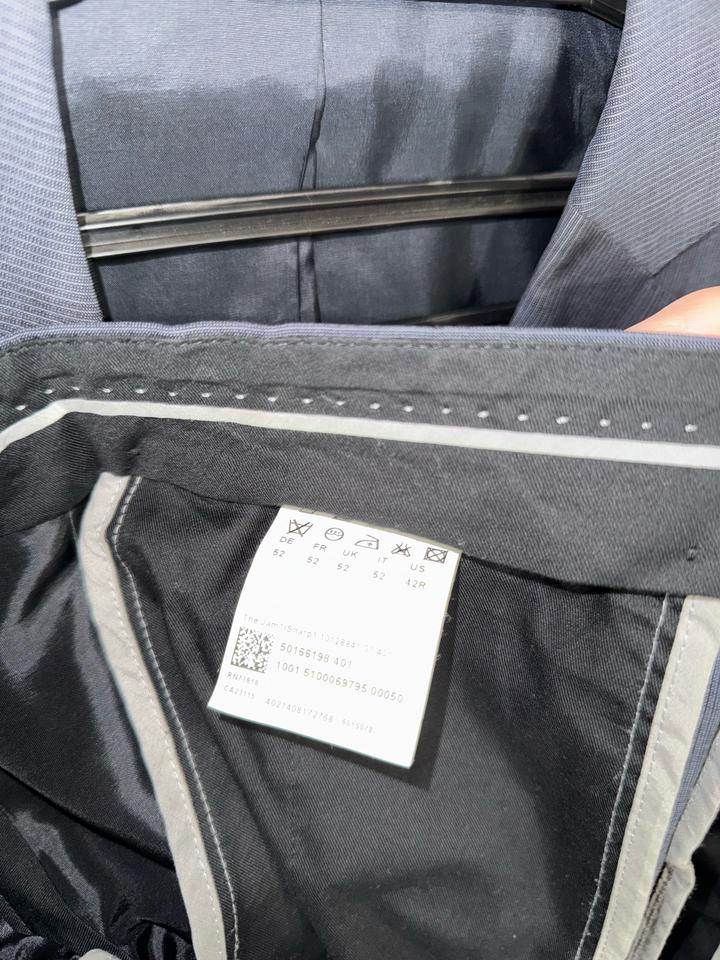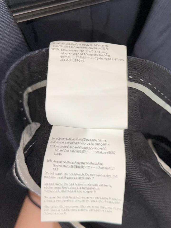 Темно синий костюм (брюки+пиджак) мужской. Отличное состояние, состав на фото. размер 52 Покупали очень дорого, носилось максимально осторожно. Артикул: 471374