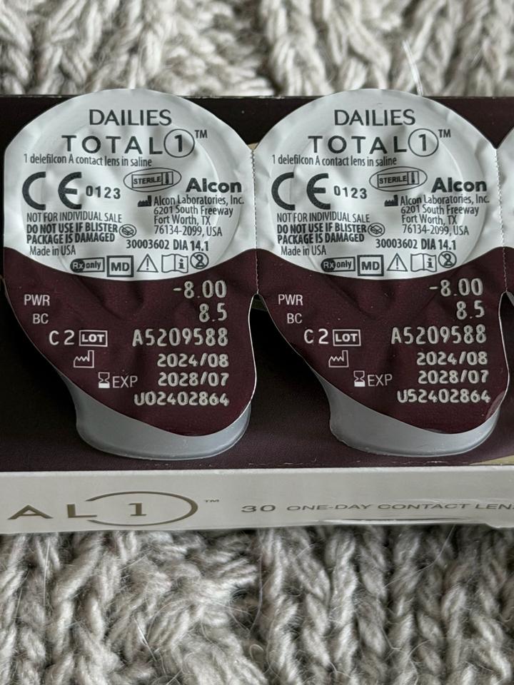 Контактные линзы однодневные. -8. Половина упаковки (16 шт). Срок годности до 07/2028 Артикул: 471389