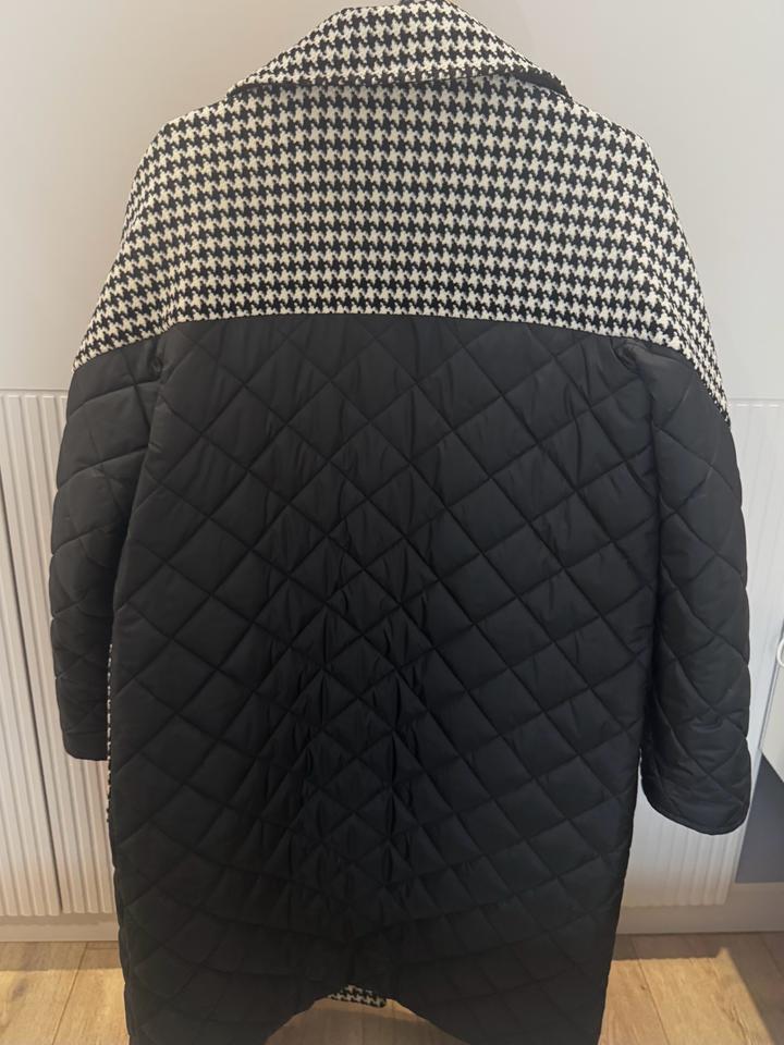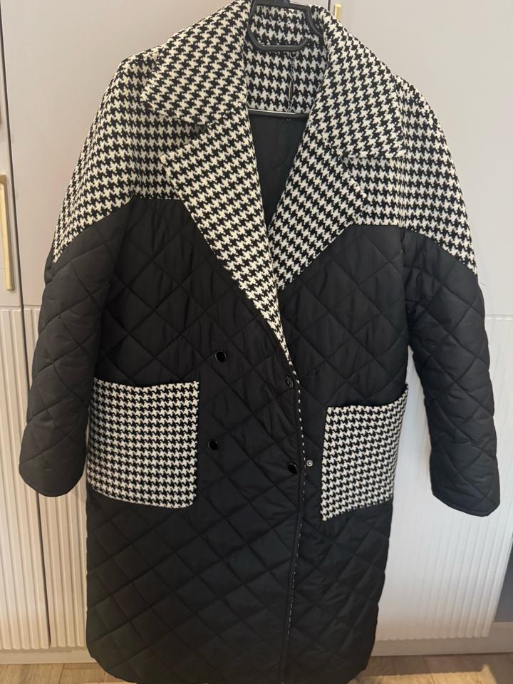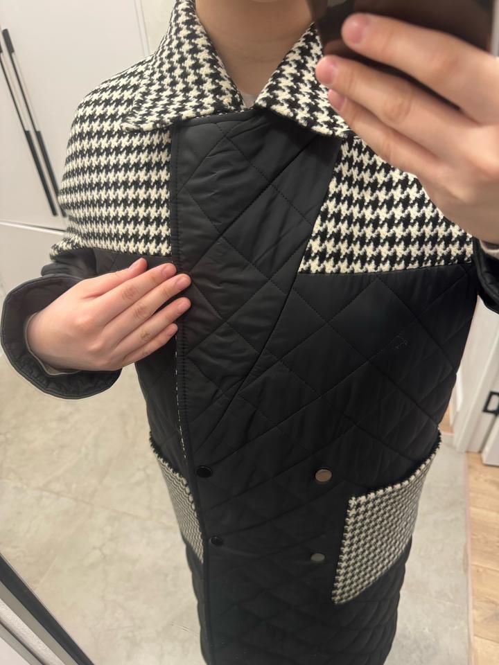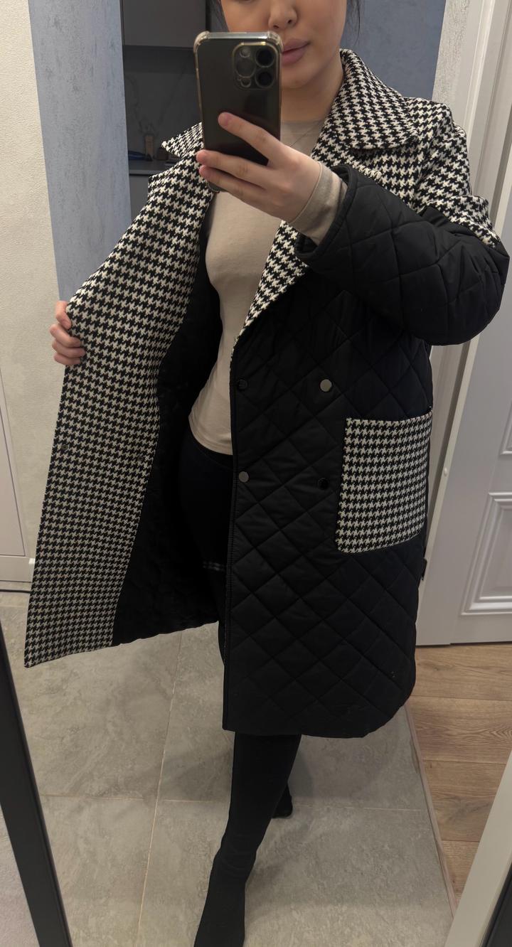 Оригинальное демисезонное пальто, покупала в Стамбуле. Модель в актуальном комбинированном дизайне: стёганая чёрная ткань + вставки с узором «гусиная лапка». Пальто с подкладом — комфортно в прохладную весну и осень. Удобные карманы, свободная посадка, хорошо держит форму и не утяжеляет силуэт. Подойдет на 44-46 (С,М) Артикул: 471740