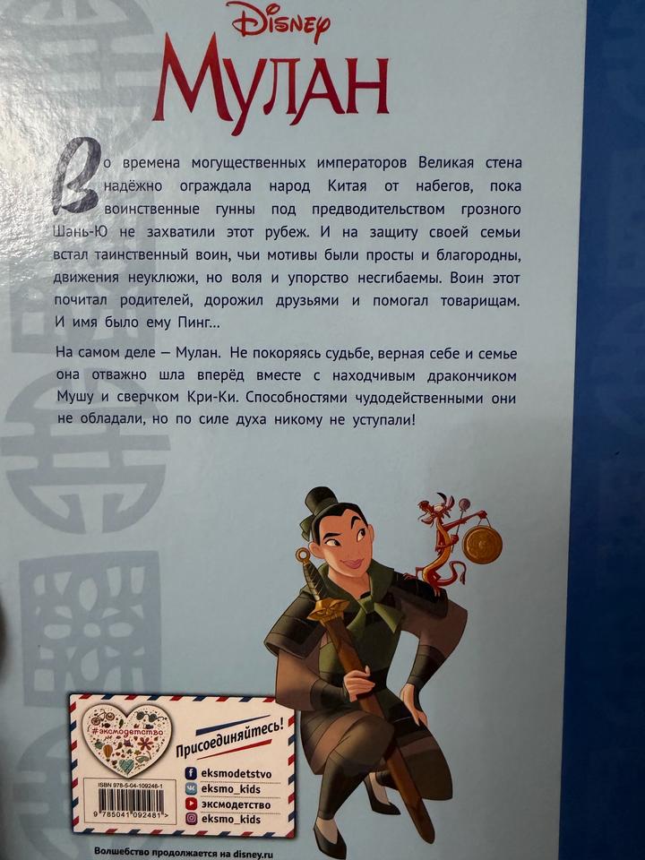 детская книга Disney «Мулан. Верная себе». красочная иллюстрированная книга, входящая в серию «Disney Принцесса». История рассказывает о храброй Мулан, которая,,,,, Артикул: 472422