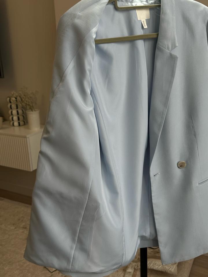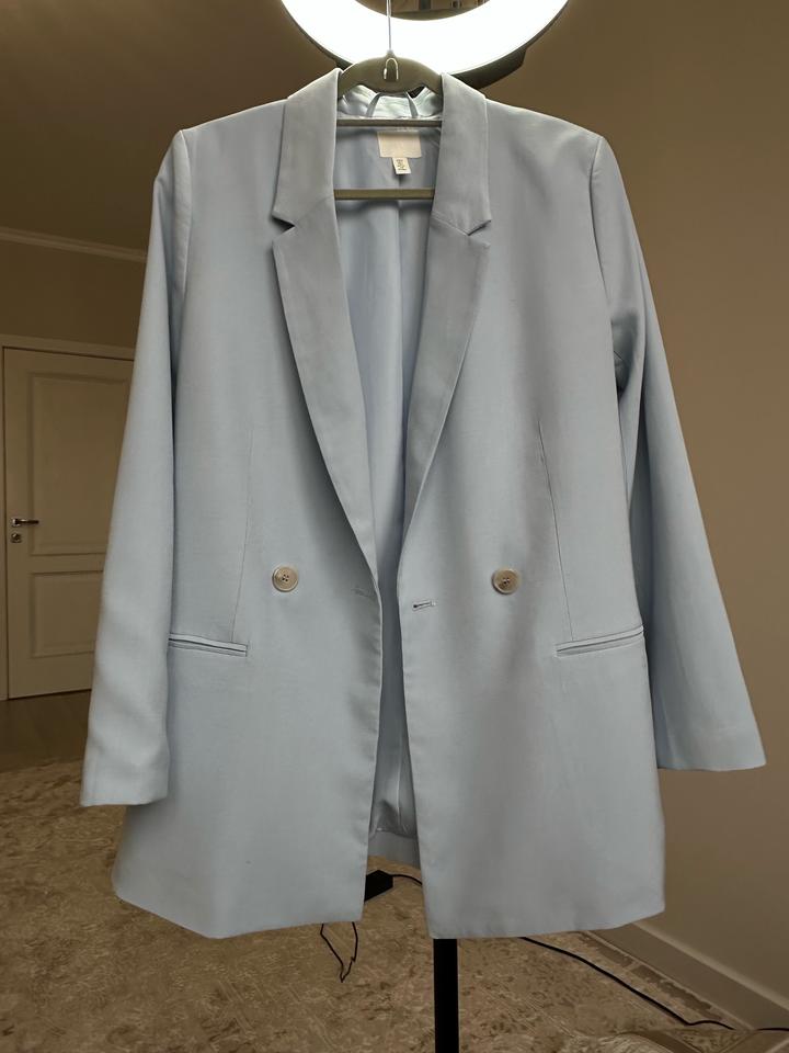 Пиджак голубого цвета бренд H&M, размер S, на подкладе. В идеальном состоянии. Состав :93% вискоза, 7% полиэстер. Артикул: 472509