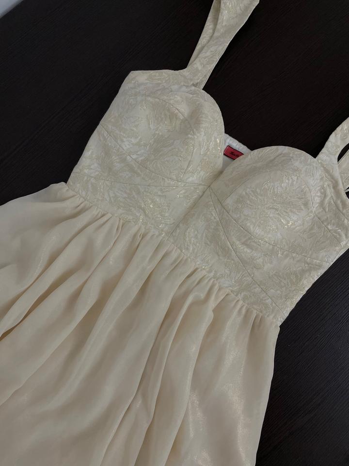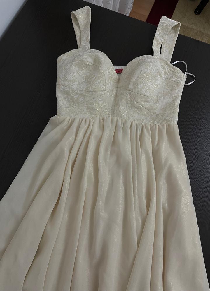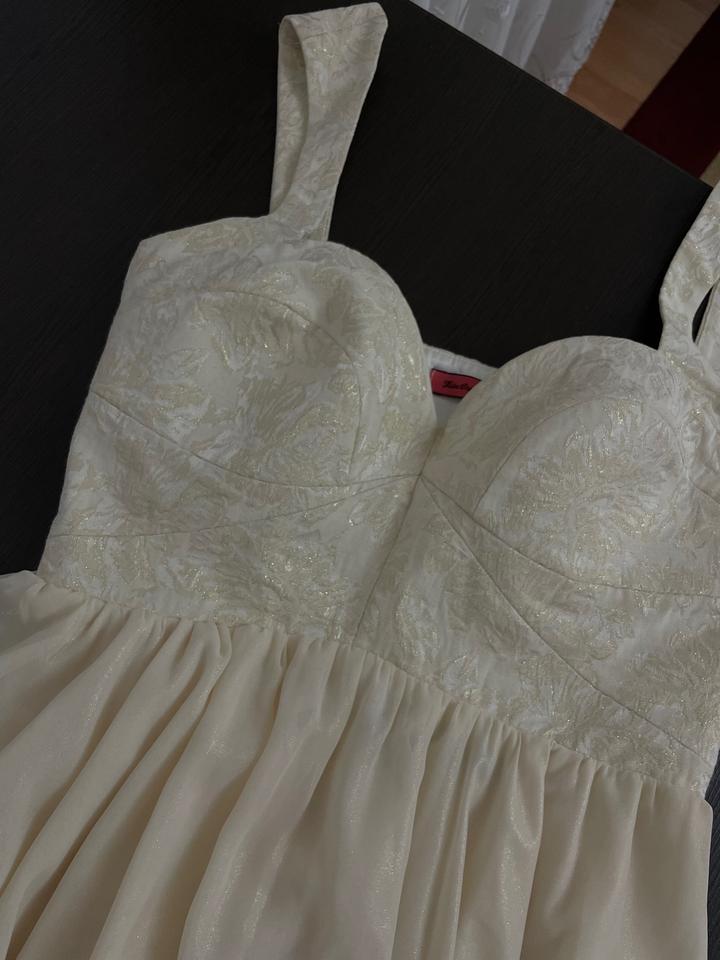 Вечернее короткое платье из koton В очень хорошем состоянии,одевалась 1раз Цвет молочный ,блестящий Размер S -44,спина открытая Артикул: 472689