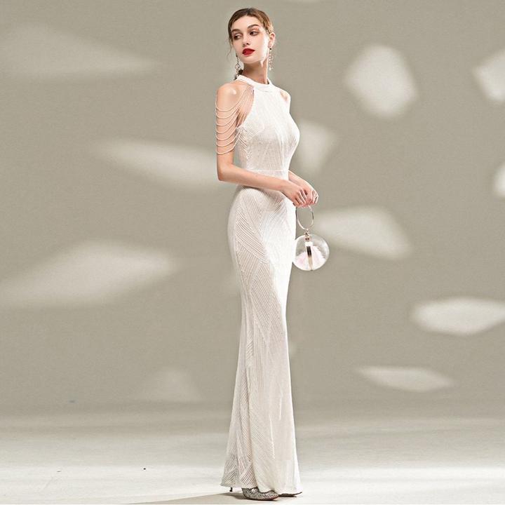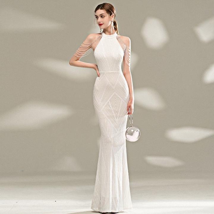 Белое облегающее платье. В идеальном состоянии. Материал снаружи покрыт мелкими бусами. Размер: 40-44. Индивидуальный пошив, носила 1 раз, больше не надену. Артикул: 472903