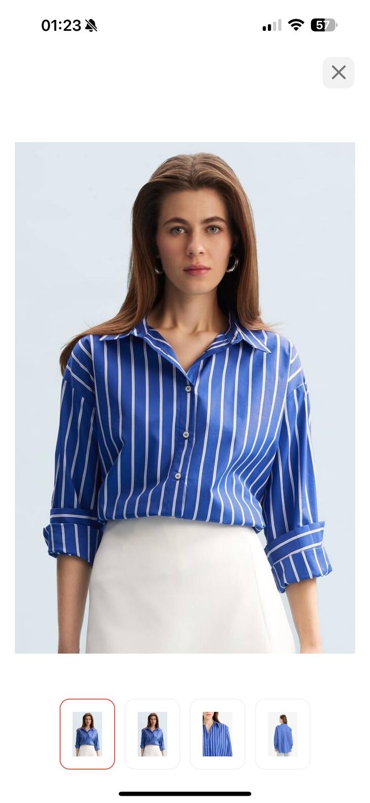 Новая рубашка фасон оверсайз, размер L подойдет до 48 рр Классная стильная рубашка, а на фото у меня размер М) оставила себе ) Артикул: 472938