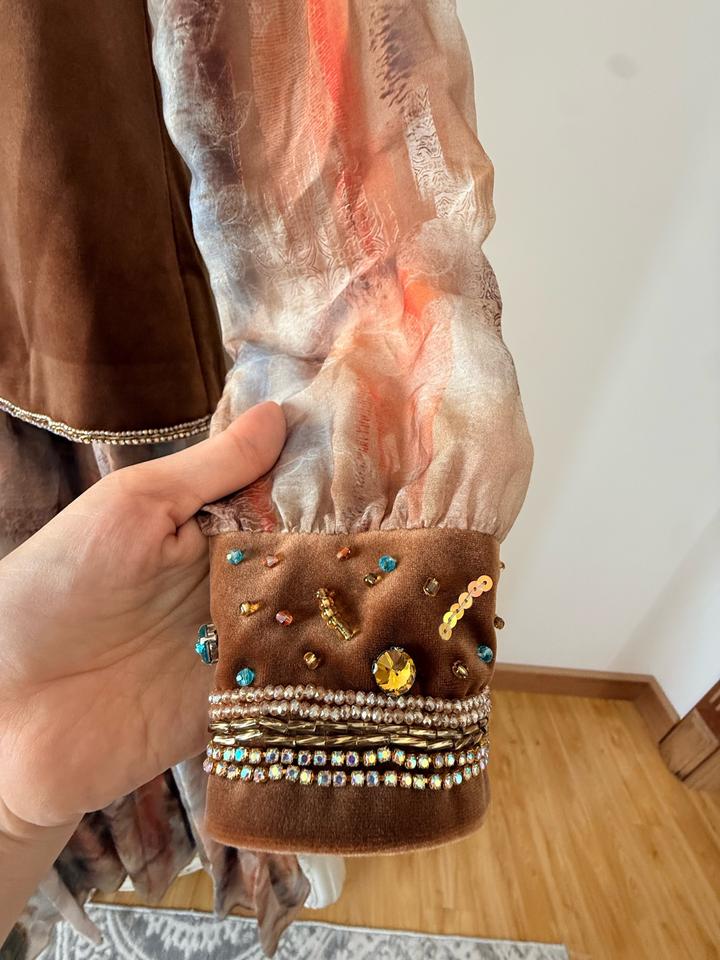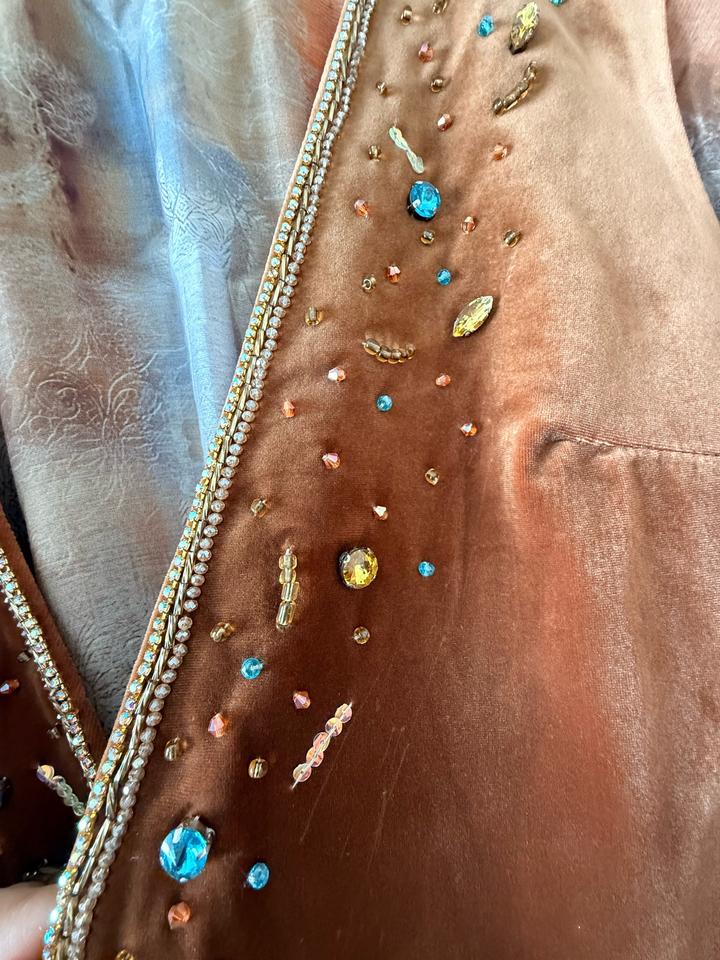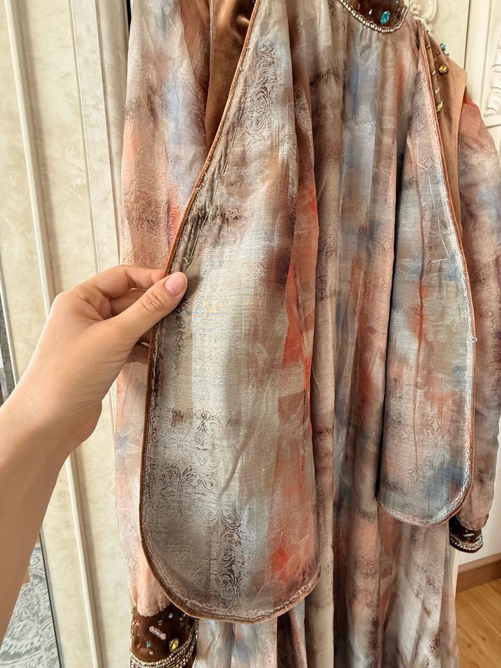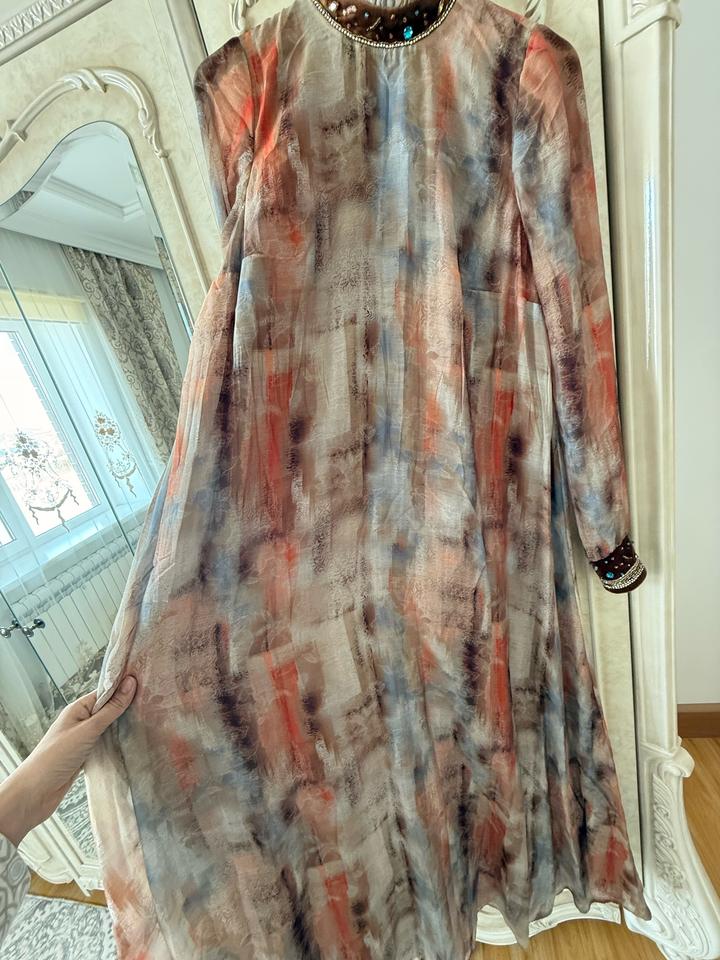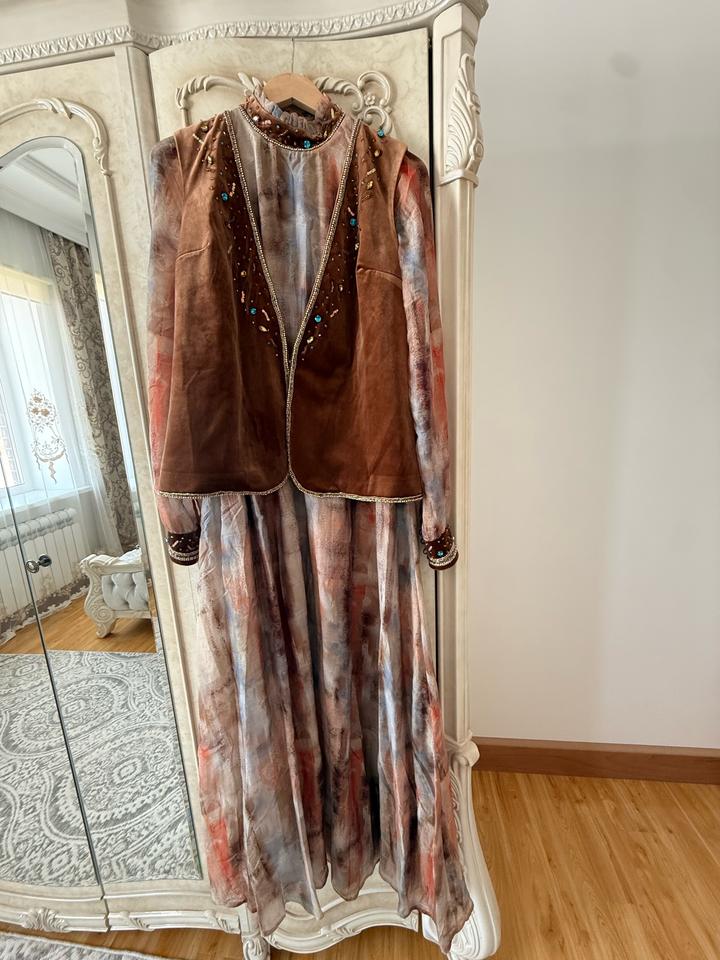 Сшито на заказ. Надевалось всего один раз. Платье можно носить и отдельно. В комплекте есть ремень. Идеально подходит для сырга салу и узату. Размер 42-46 Артикул: 473150