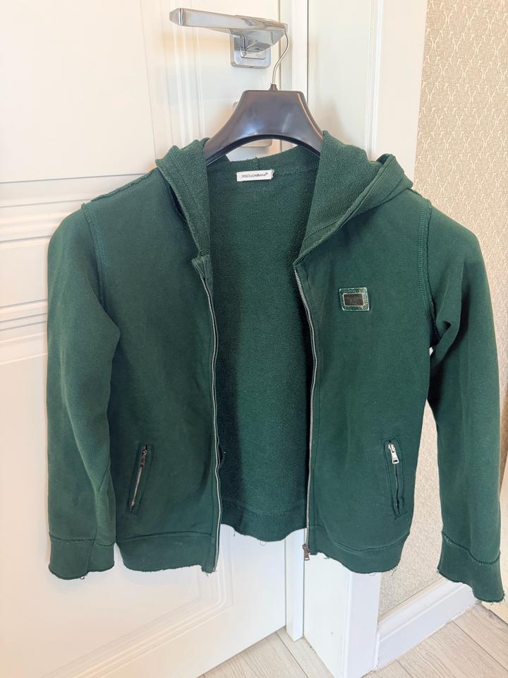 Хлопковкя толстовка на молнии с капюшоном от бренда Dolce & Gabbana на рост 120-131см Материал: 100% высококачественный хлопок. Дизайн: Худи имеет прямой крой, застежку на молнию, два прорезных кармана на молниях и эластичные ман+7### ### ## ##жете отдать в химчистку. Артикул: 473461