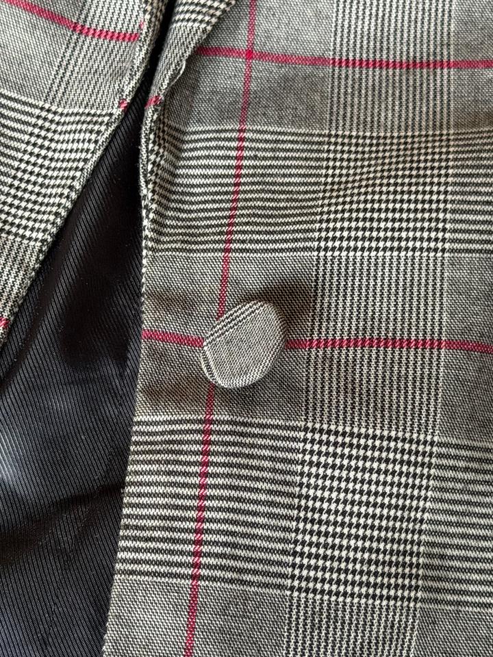 Серый приталенный пиджак с паттерном тартан. Карманы фейковые. Ношенное пару раз, небольшие катышки. Артикул: 473859