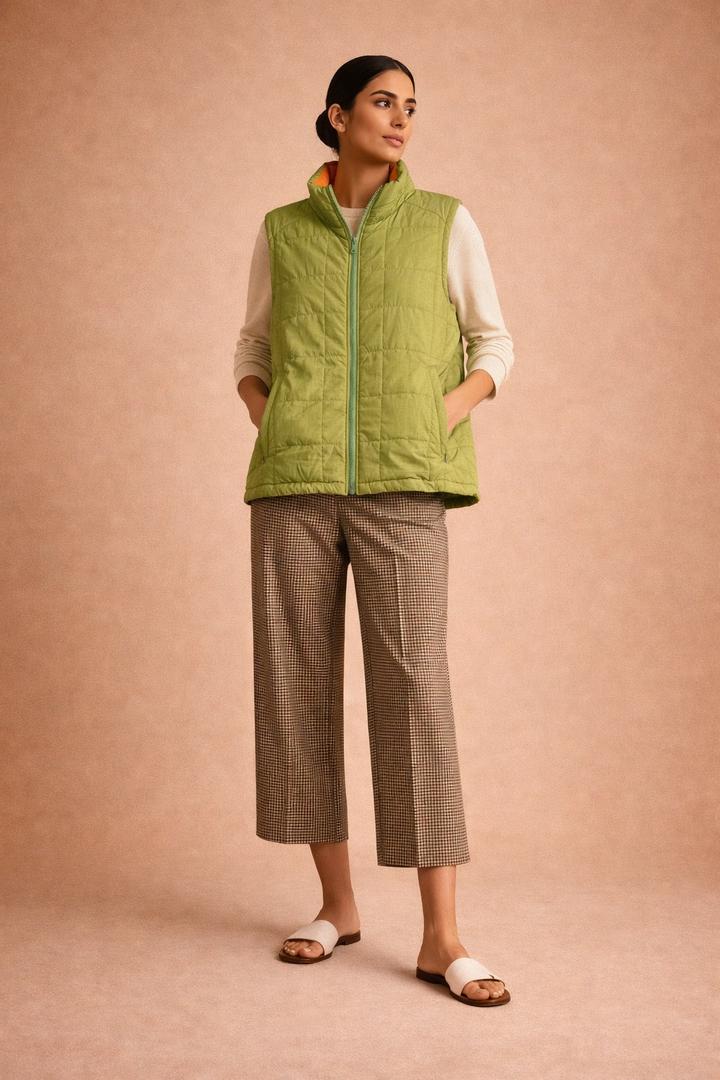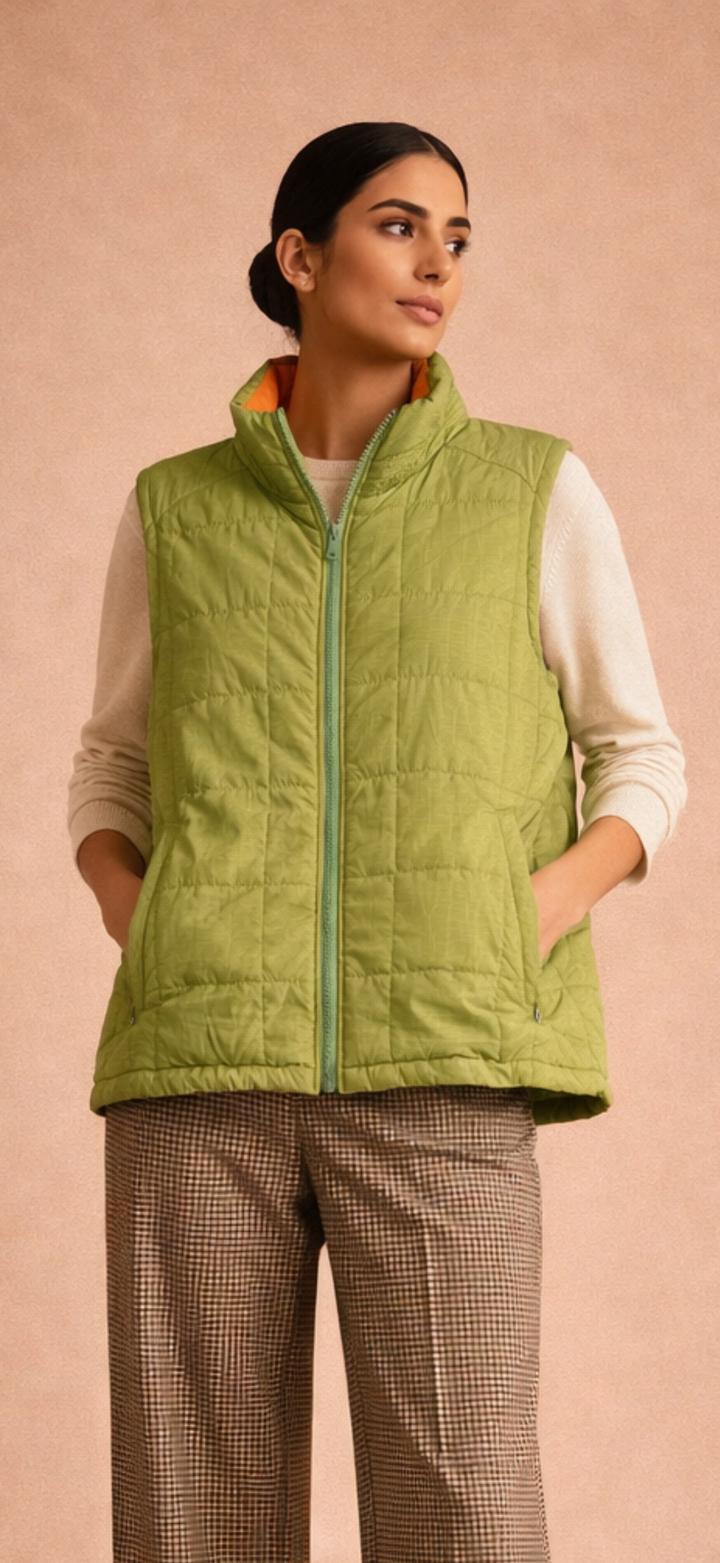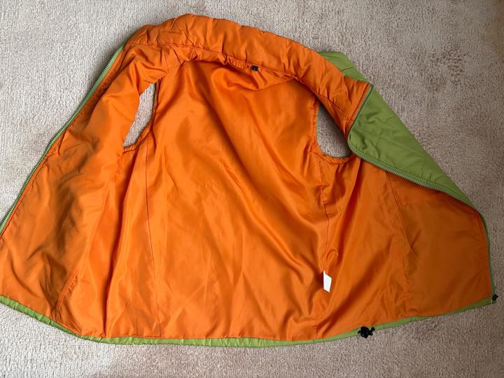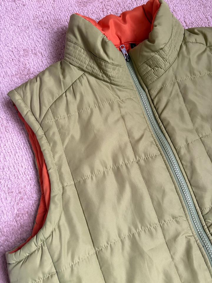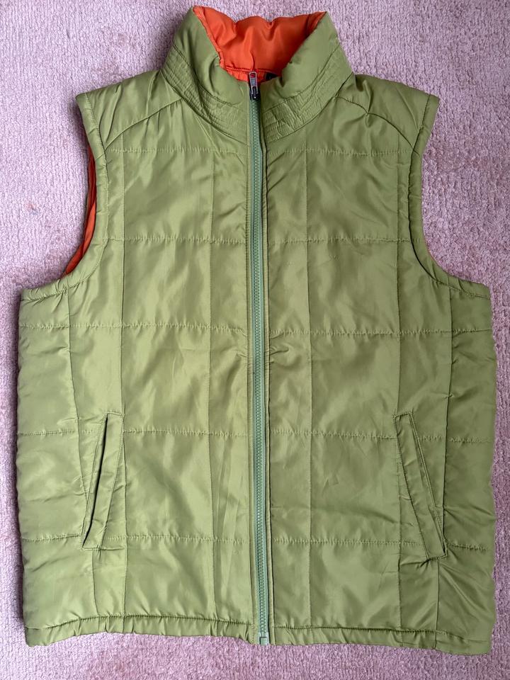 Стеганый жилет в салатовом оттенке с сочным ораньжевым подкладом. Состояние отличное. Артикул: 473939
