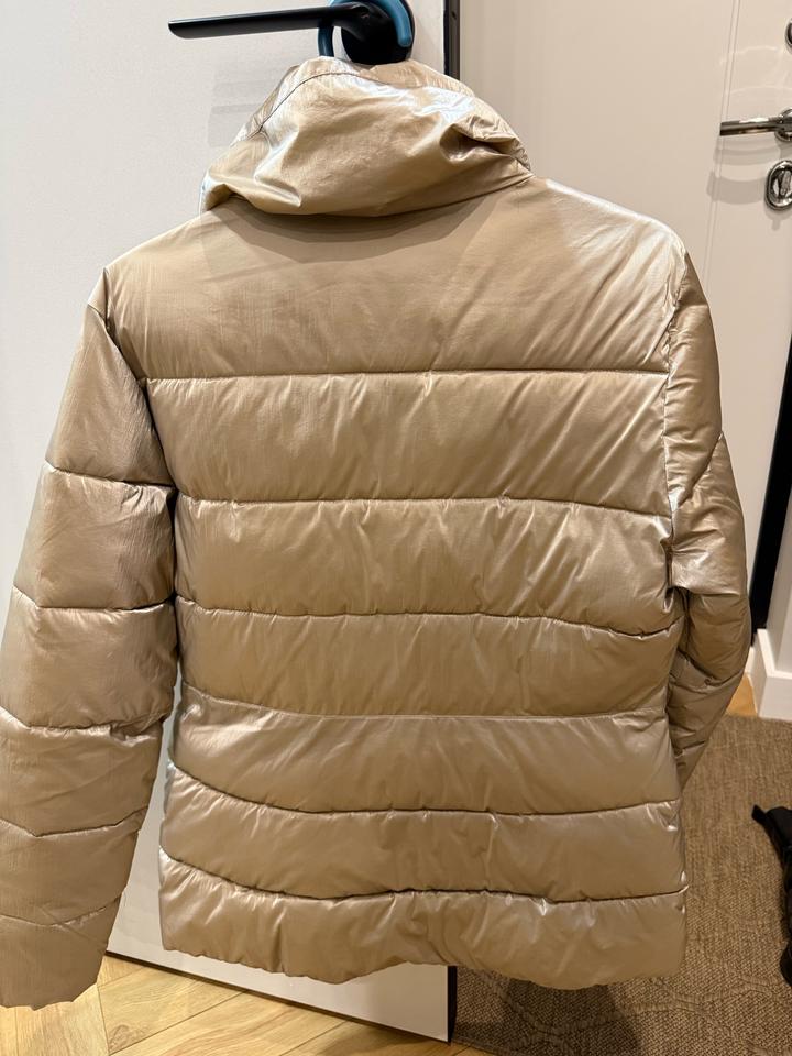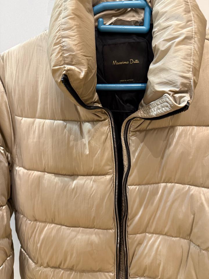 Куртка Massimo Dutti, демисезонная,но я носила зимой, хорошая теплая куртка,прикрывает нижнюю часть. Цвет бежевый но блестящий немного. Артикул: 473986