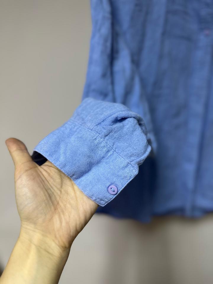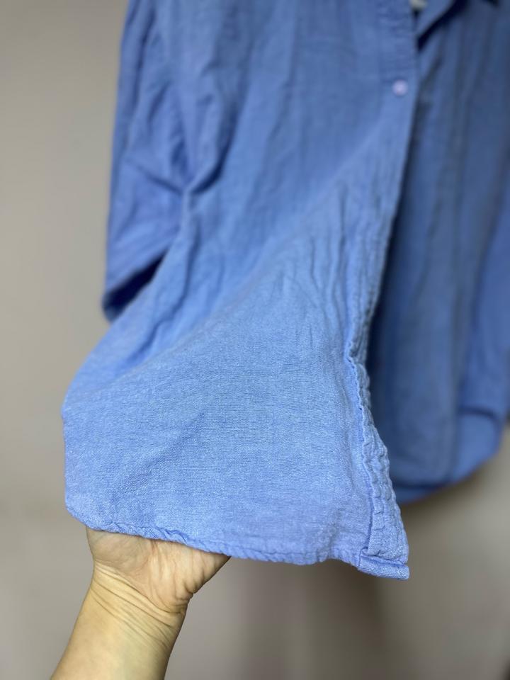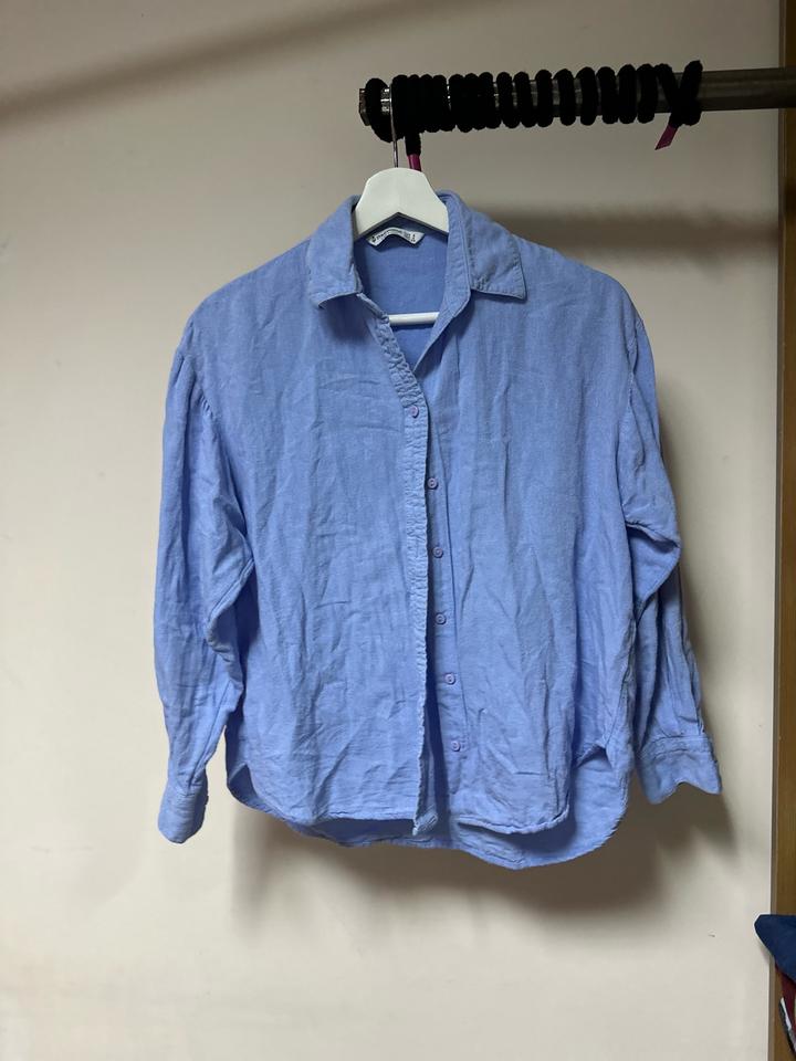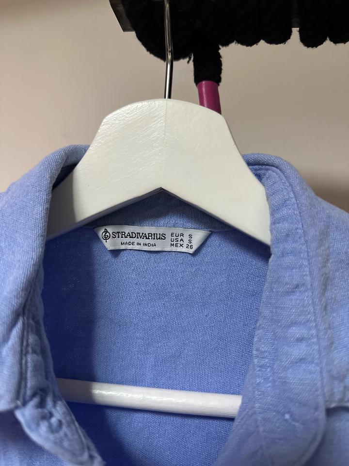 Нежная рубашка Stradivarius в небесно-голубом оттенке 💙 Состав — лён и хлопок: лёгкая, дышащая и идеальная на тёплый сезон. Свободная посадка, мягкая фактура, универсальный крой — отлично смотрится с джинсами, льняными брюками или шортами. Размер S. Комфорт и стиль в одном образе ✨ Артикул: 474183