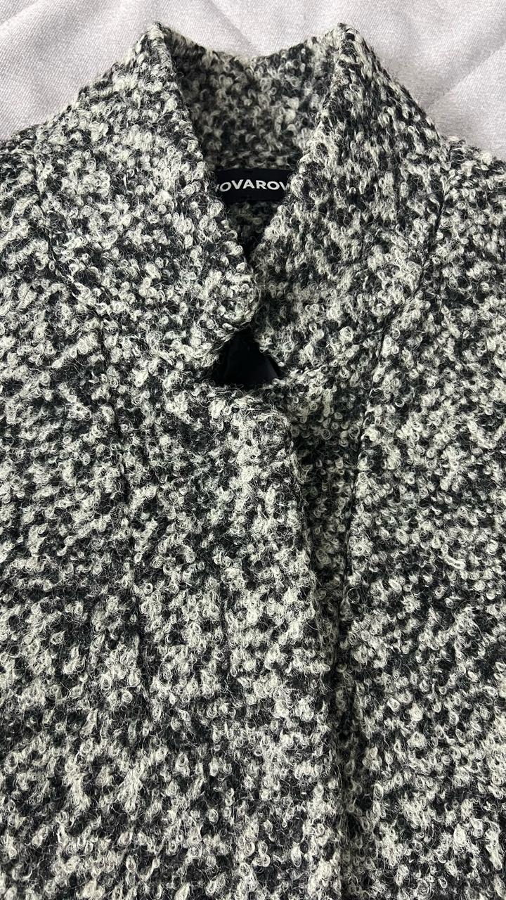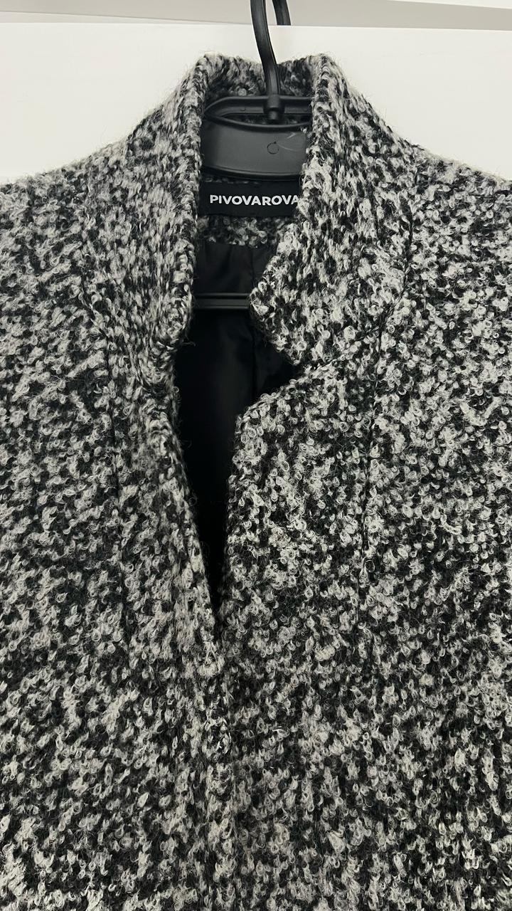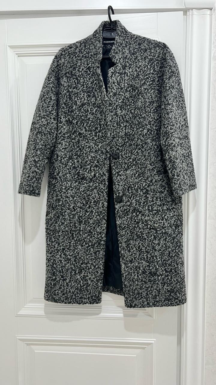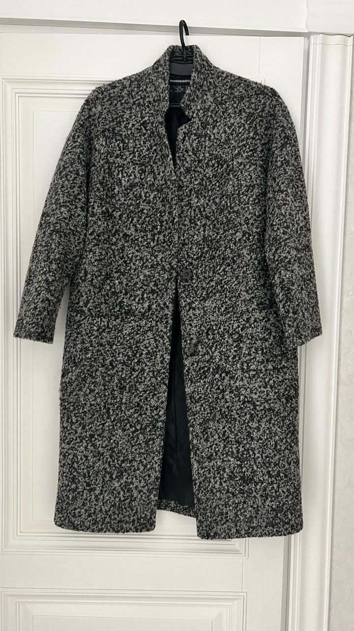 Продается шерстяное пальто Бренда Pivovarova. Ткань буклированная в черно серый цвет. Прямого кроя, стойка воротник, спереди на 2 кнопках , пальто на подкладе, на размер 44-46, S-M . Длина пальто 100 см. Цена 10000 тенге. В отличном состоянии. Артикул: 474325