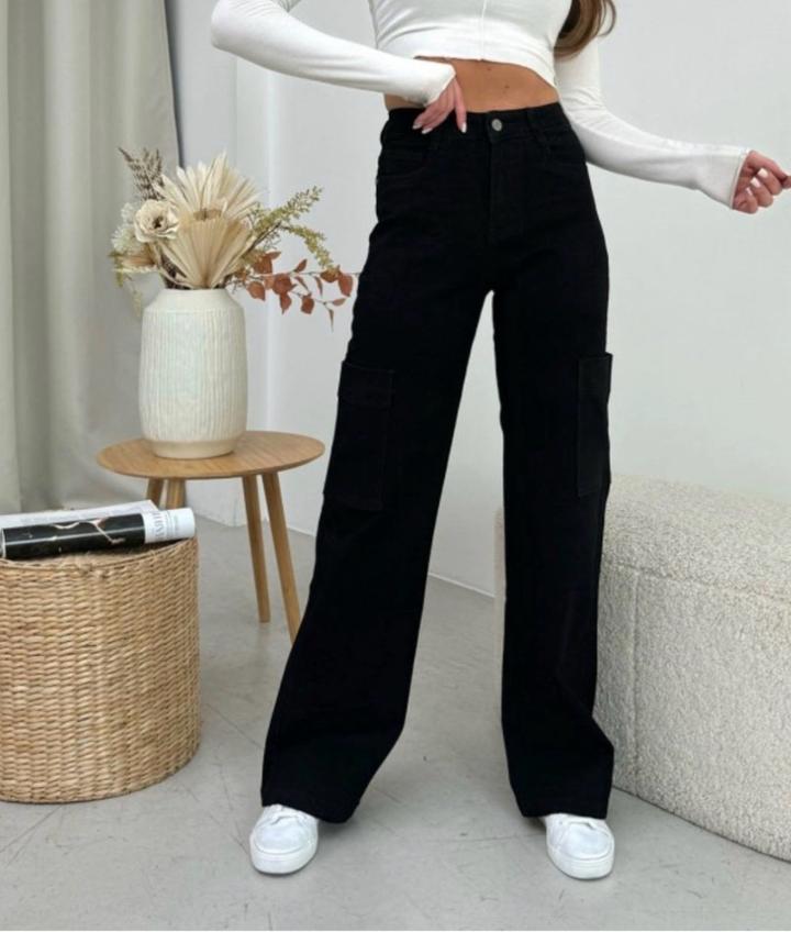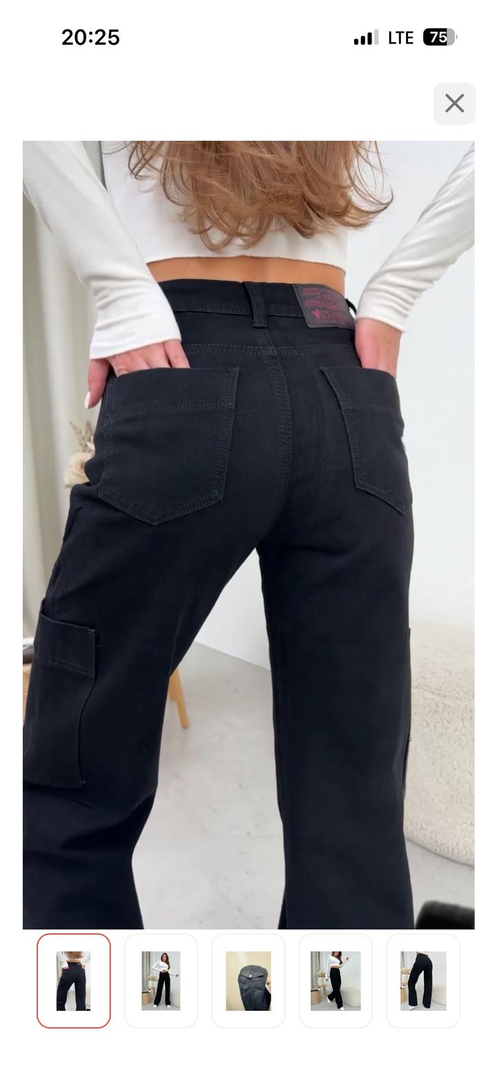 Джинсы карго в черном цвете, надевались пару раз. Артикул: 474355