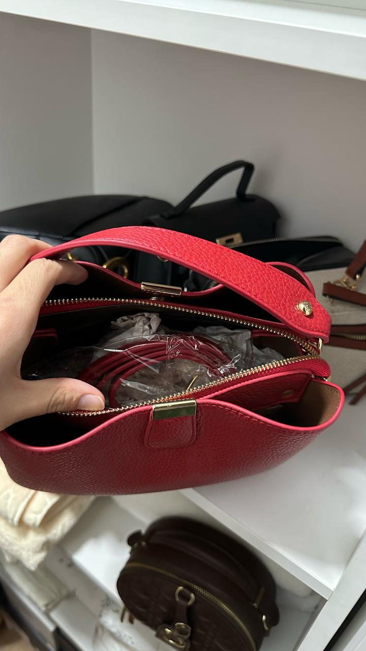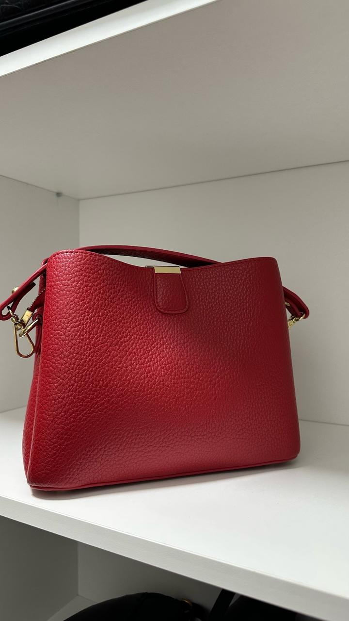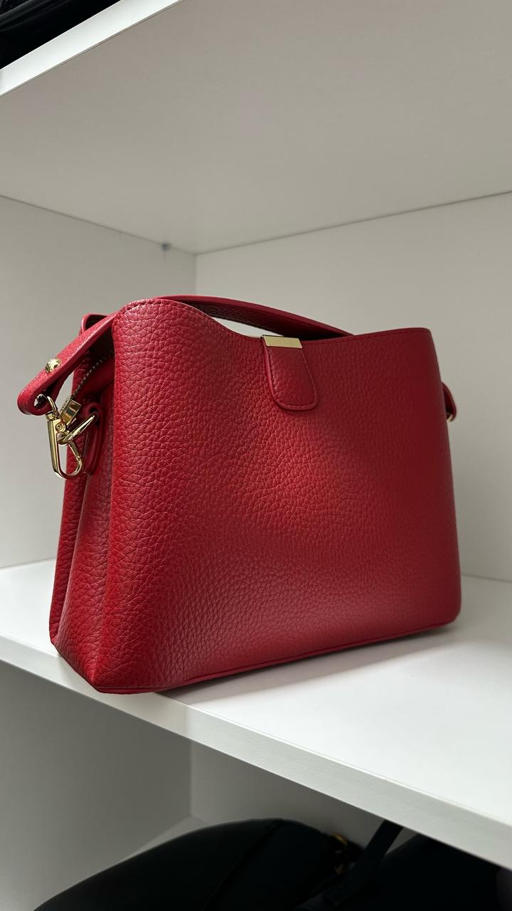 Новый!!! Элегантная красная сумка классической формы из качественного фактурного материала. Оснащена удобной ручкой и съёмным плечевым ремнём, дополнена золотистой фурнитурой. Артикул: 474638