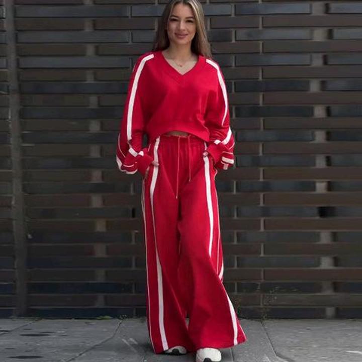 Стильный и удобный женский комплект из двух предметов, состоящий из кофты и широких брюк-джоггеров. Идеально подходит для создания спортивного или повседневного образа. Дизайн: Яркий красный цвет с контрастными белыми полосами по бокам брюк и на рукавах создает стройный и удлиненный. Широкий крой брюк подходит для любого типа фигуры. Артикул: 475226
