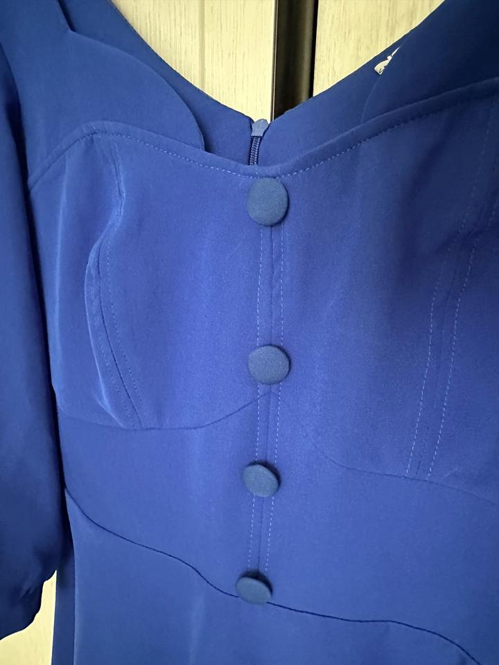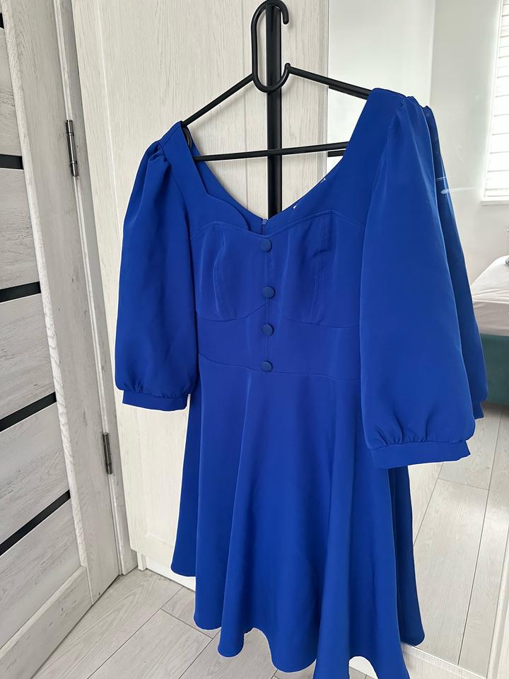 Синее платье, в отличном состоянии без дефектов, замок и пуговицы качественно пришиты. Надевалось один раз на мероприятие. Подойдет девушкам с большим размером груди, ещё более эффектно будет смотреться вырез. Рукав три четверти. Артикул: 475272