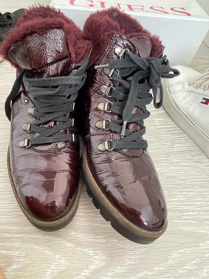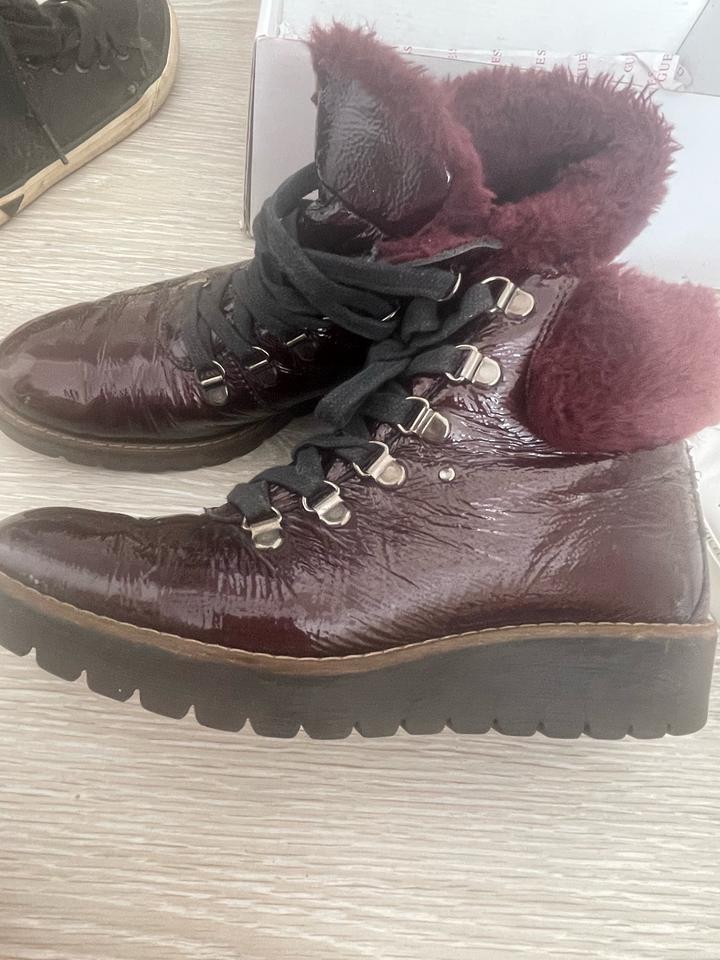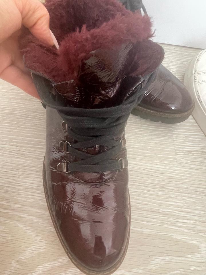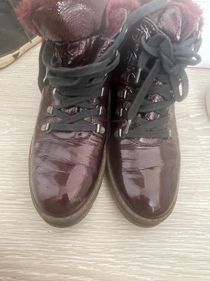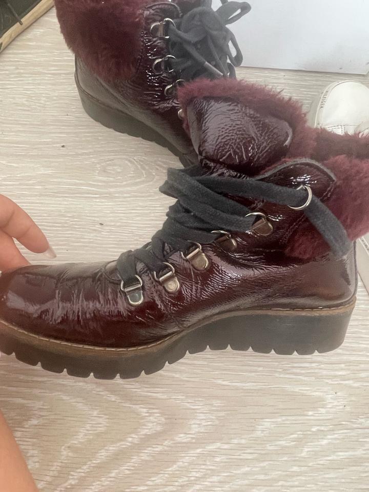 Классные в шикарном цвете бургунди, качество прям супер. Натуральная лаковая кожа и мех. Одела 1 раз, малы. Покупала в KIMEX Артикул: 475433