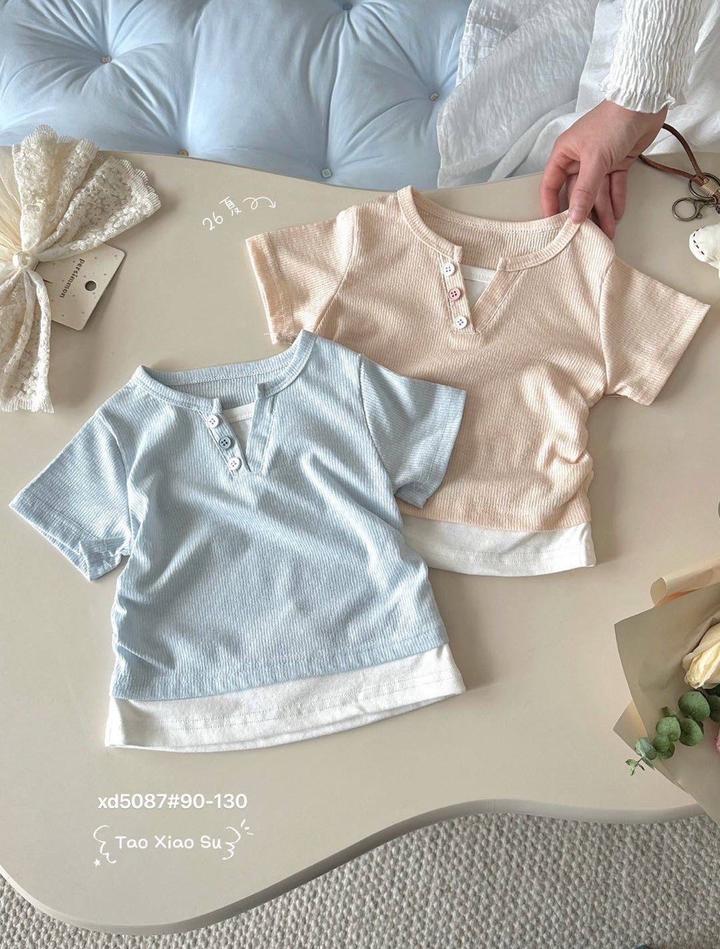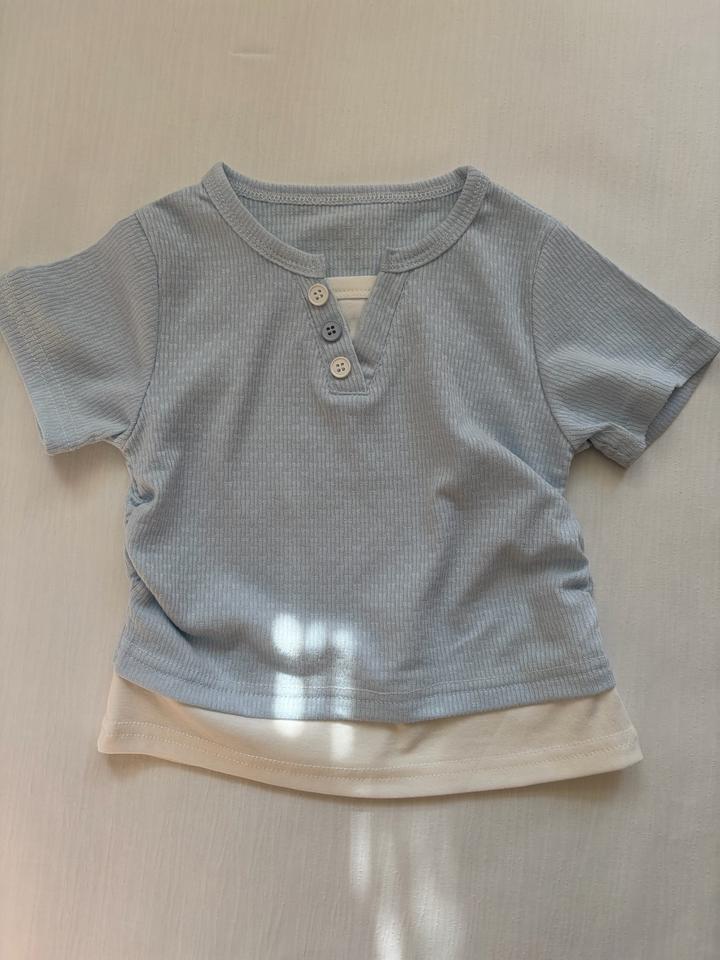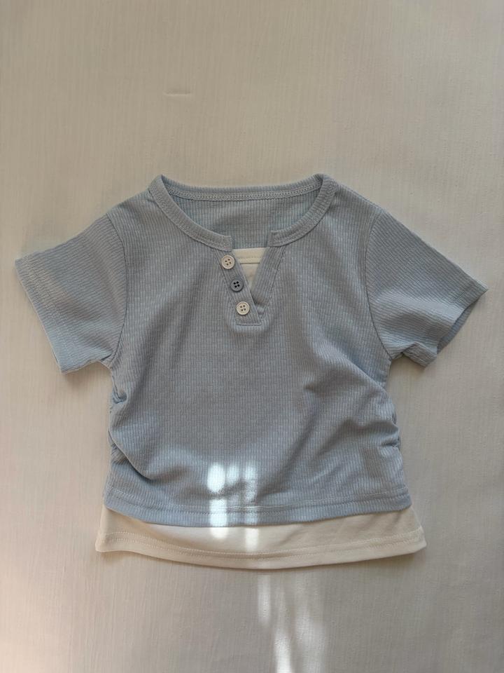 Футболка на девочку в нежно голубой расцветке, по бокам сборки, снизу хб полоска белая Размеры:90,100,110,120 Артикул: 475495