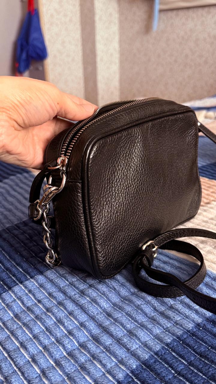 Классика, база. Кожа зернистая, ремешок можно снять. Подклад тканевый. В очень хорошем состоянии. Италия. Артикул: 475572