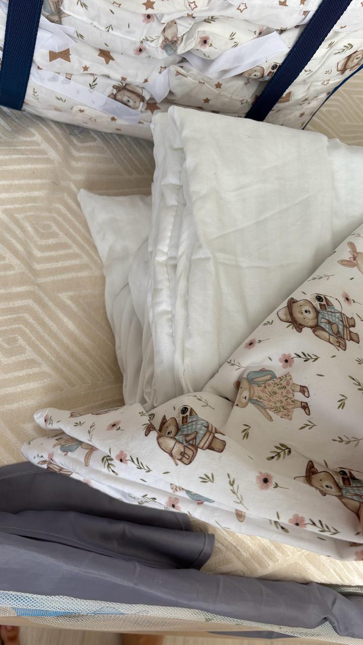 В отличном состоянии, после химчистки. В комплекте 12 бортиков, одеяло с пододеяльником, подушка с наволочкой Артикул: 475838